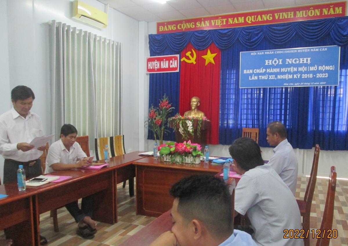 Ngày 20/12/2022, Huyện hội Năm Căn đã tổ chức hội nghị BCH mở rộng để đánh giá kết quả thực hiện nhiệm vụ năm 2022, rút ra bài học kinh nghiệm, triển khai Kế hoạch công tác hội Năm 2023. Triển khai Chương trình công tác 6 tháng đầu năm và Quý I, đồng thời phát động phong trào thi đua trong đó trọng tâm là vận động quà tết Quỹ Mão và đẩy nhanh công tác chuẩn bị đại hội cấp cơ sở.