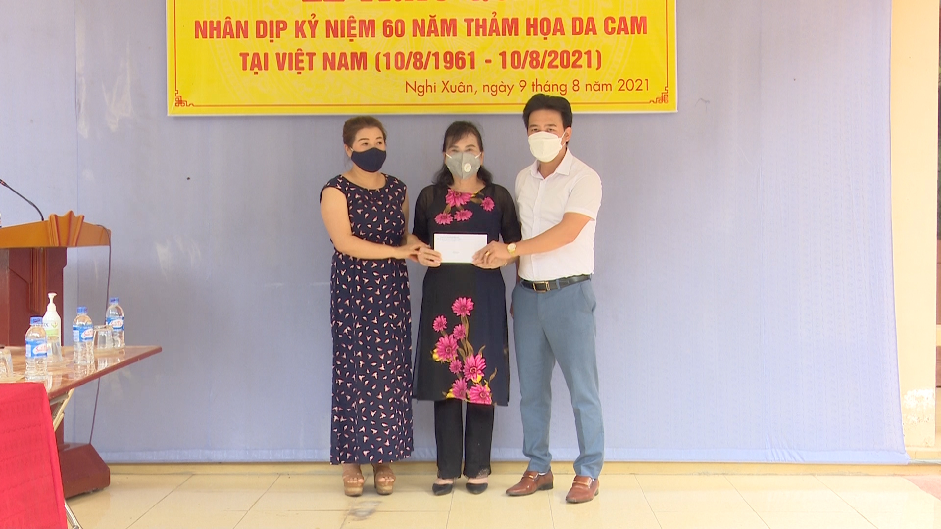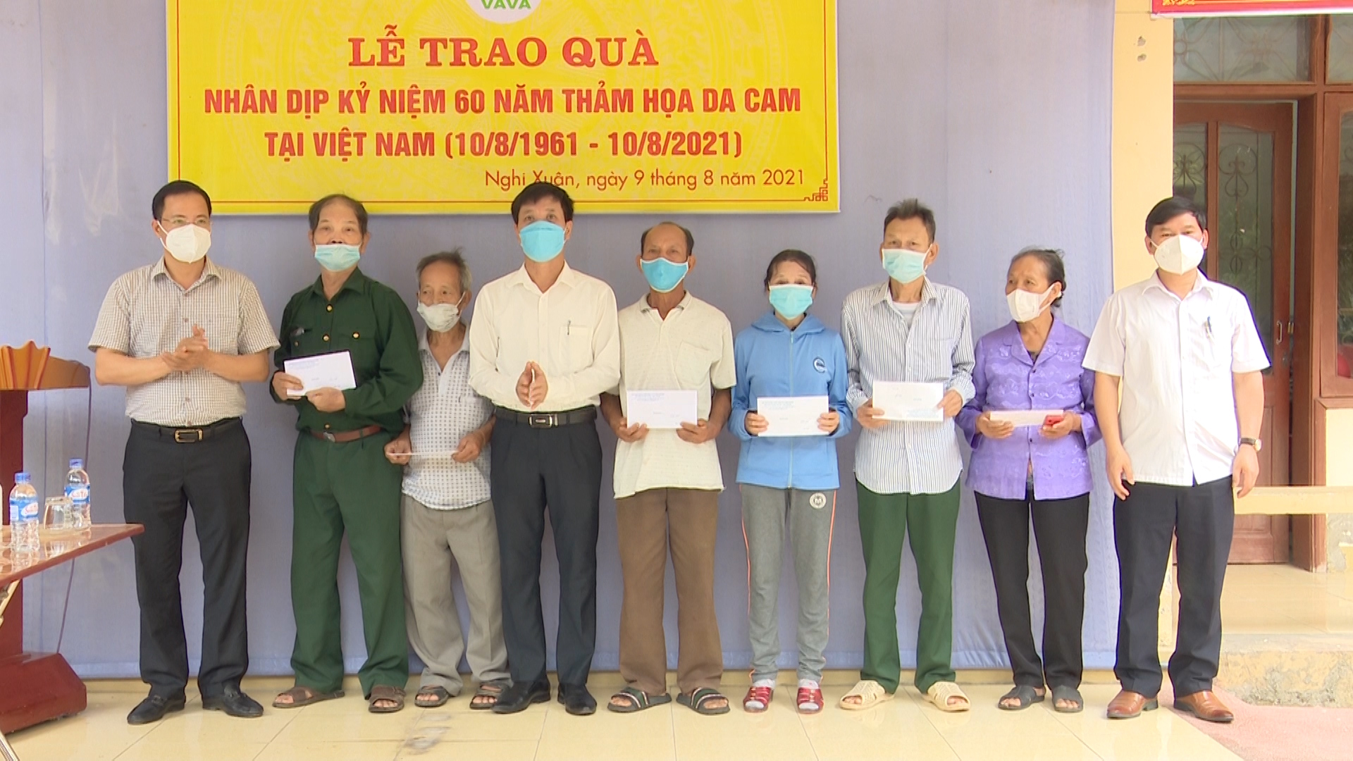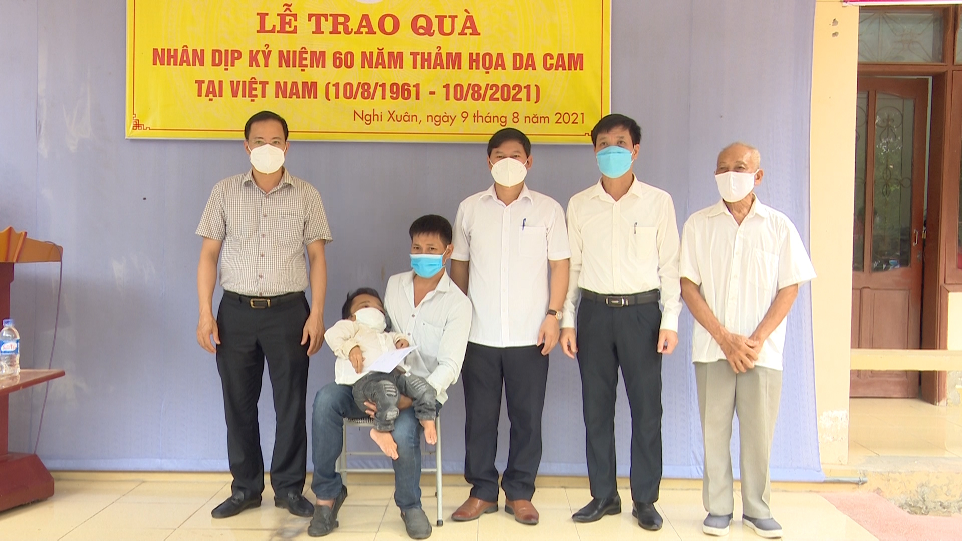 Sáng ngày 9/8, nhân kỷ niệm 60 năm Thảm họa da cam tại Việt Nam (10/8/1961 – 10/8/2021), Hội NNCĐDC/dioxin huyện Nghi Xuân, tỉnh Hà Tĩnh đã tổ chức trao quà cho nạn nhân có hoàn cảnh khó khăn trên địa bàn. Về dự có ông Nguyễn Văn Hiếu, Phó Bí thư Thường trực Huyện ủy, Chủ tịch HĐND huyện; ông Bùi Việt Hùng, Phó Chủ tịch UBND huyện; ông Lê Tiến Hải, Chủ tịch UBMTTQ huyện.