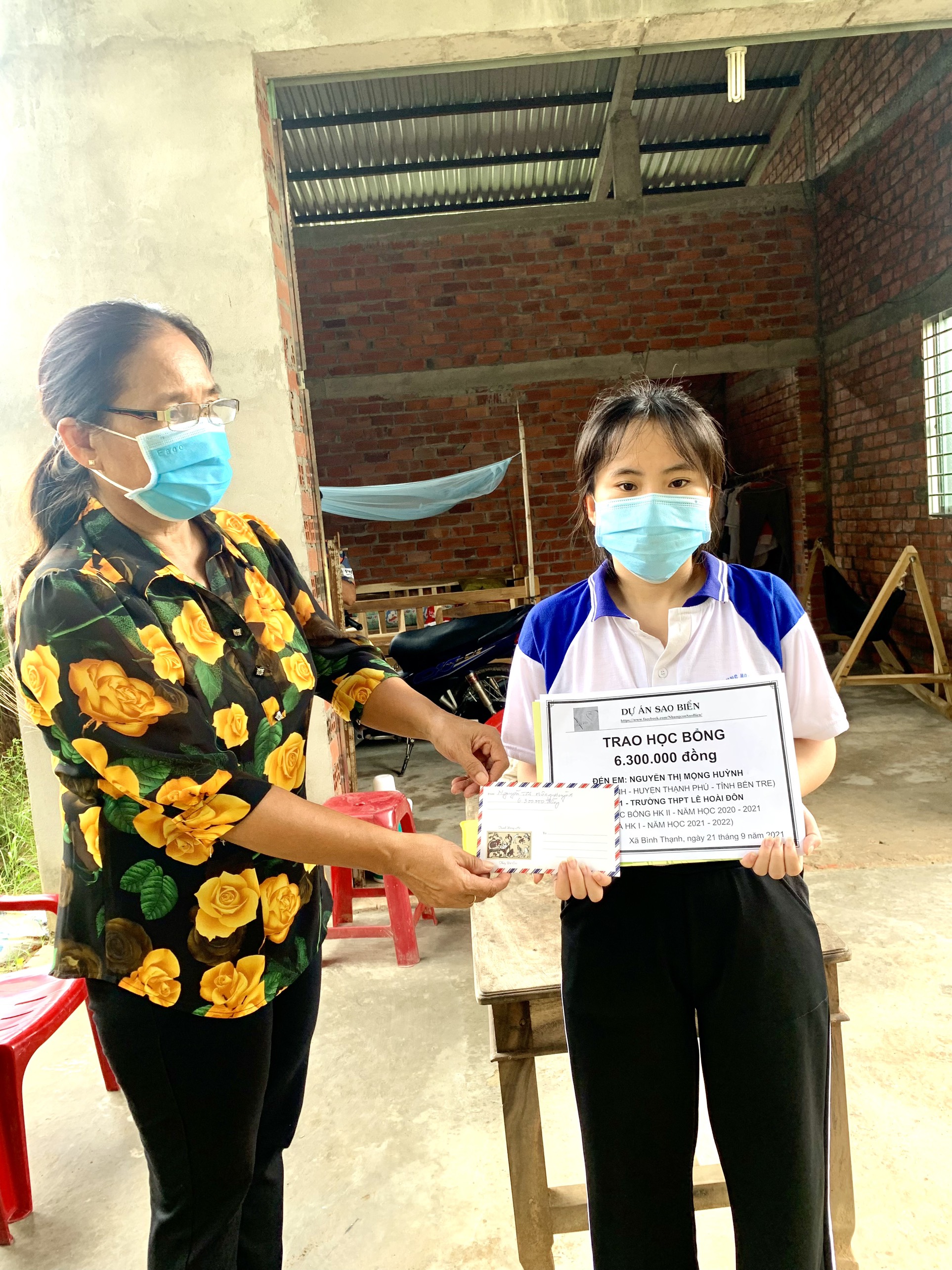 Học bổng trao đợt này gồm: Học kỳ II năm học 2020 - 2021 và Học kỳ I năm học 2021 - 2022, mỗi suất học bổng trị giá 6.300.000 đồng. Tổng số tiền trao học bổng 12.600.000 đồng. Đây là năm học thứ 3 các em được nhận học bổng từ Dự án Sao biển.