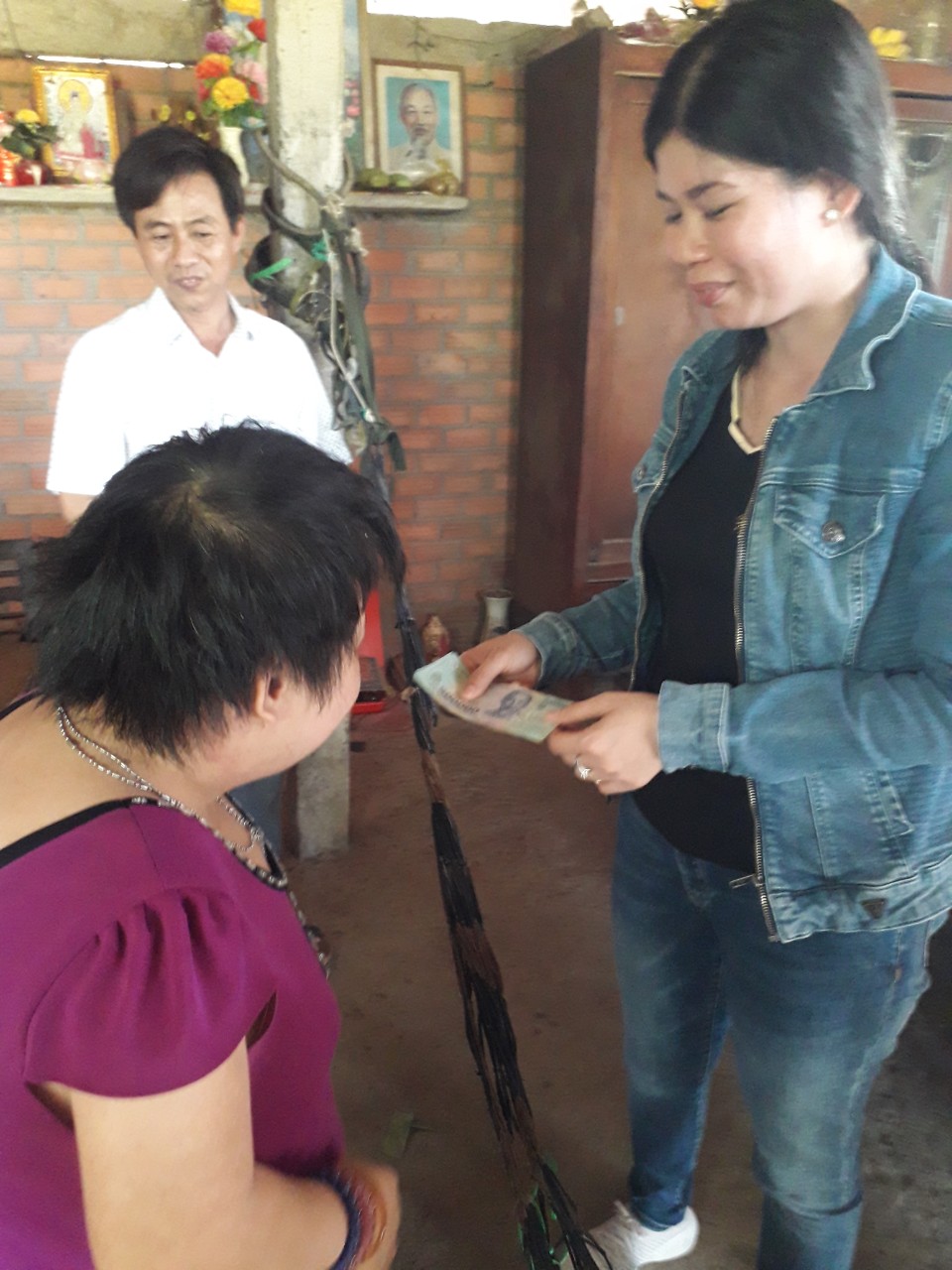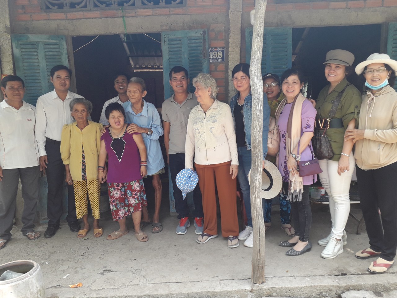 Đoàn đến gia đình em Nguyễn Thị Bích, 25 tuổi, người khuyết tật nặng, đang sống cùng cha mẹ cũng là người khuyết tật là một trong những hộ nghèo của ấp Cầu Lớn, trao tặng cho gia đình 20 kg gạo, 02 thùng mì gói, 01 thùng dầu ăn 05 lít cùng tiền mặt trị giá 5,5 triệu đồng và khảo sát thực địa. Theo dự kiến, Nhóm Từ thiện Hoa Sen sẽ hỗ trợ kinh phí xây dựng lại căn nhà cho gia đình em Bích, với diện tích 60 mét vuông, kinh phí dự toán 40 triệu đồng.