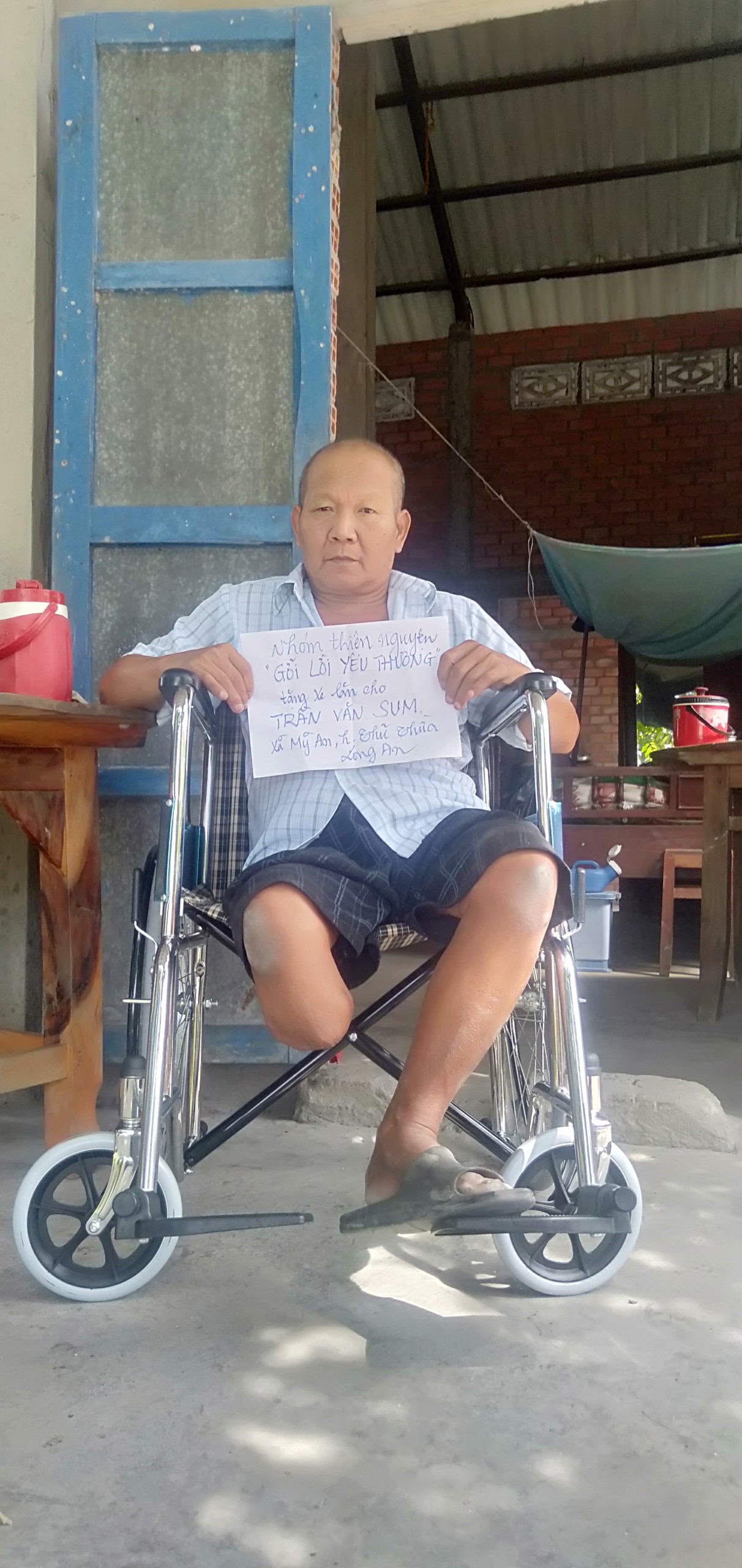 Anh Trần Văn Sum, một trong 16 người được nhận xe lăn.