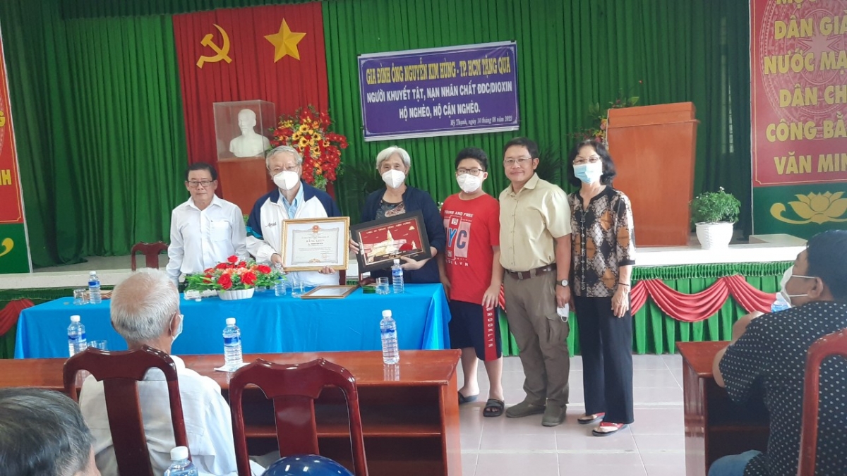 Mỗi phần quà là 300.000 đồng tiền mặt; tổng trị giá 30 triệu đồng; do Hội Nạn nhân chất độc da cam/dioxin huyện vận động gia đình ông Nguyễn Kim Hùng, cựu Giáo chức tại Quận 4, TP. Hồ Chí Minh tài trợ. Dịp này, bà Trần Thị Láng, Phó Chủ tịch Hội Nạn chất độc da cam/dioxin huyện đã trao Bằng khen của UBND tỉnh tặng cho ông Nguyễn Kim Hùng, người có nhiều công sức giúp đỡ ủng hộ cho nạn nhân chất độc da cam, người khuyết tật của huyện trong nhiều năm qua.