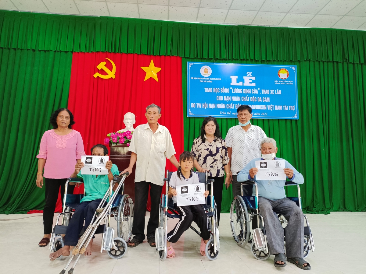 Hưởng tới kỷ niệm 61 năm Thảm họa da cam ở Việt Nam và Ngày Vì nạn nhân chất độc da cam (10/8/1961-10/8/2022), sáng 08/8/2022, tại Hội trường UBND xã Liêu Tú, huyện Trần Đề, tỉnh Sóc Trăng, Hội Nạn nhân chất độc da cam/dioxin tỉnh Sóc Trăng, phối hợp với Hội Nạn nhân chất độc da cam/dioxin huyện Trần Đề; Hội Khuyến học huyện trao xe lăn, học bổng và tặng quà cho nạn nhân chất độc da cam, người khuyết tật, người già neo đơn. Đến dự có đại diện Văn phòng Tỉnh hội; ông Trần Tân Bình, Chủ tịch Huyện hội; bà Nguyễn Thị Tuyết Trinh, Phó Chủ tịch Huyện hội; bà Lý Ngọc Liên; Phó Chủ tịch Hội Khuyến học huyện; cán bộ chính quyền địa phương cùng các em học sinh và nạn nhân chất độc da cam.