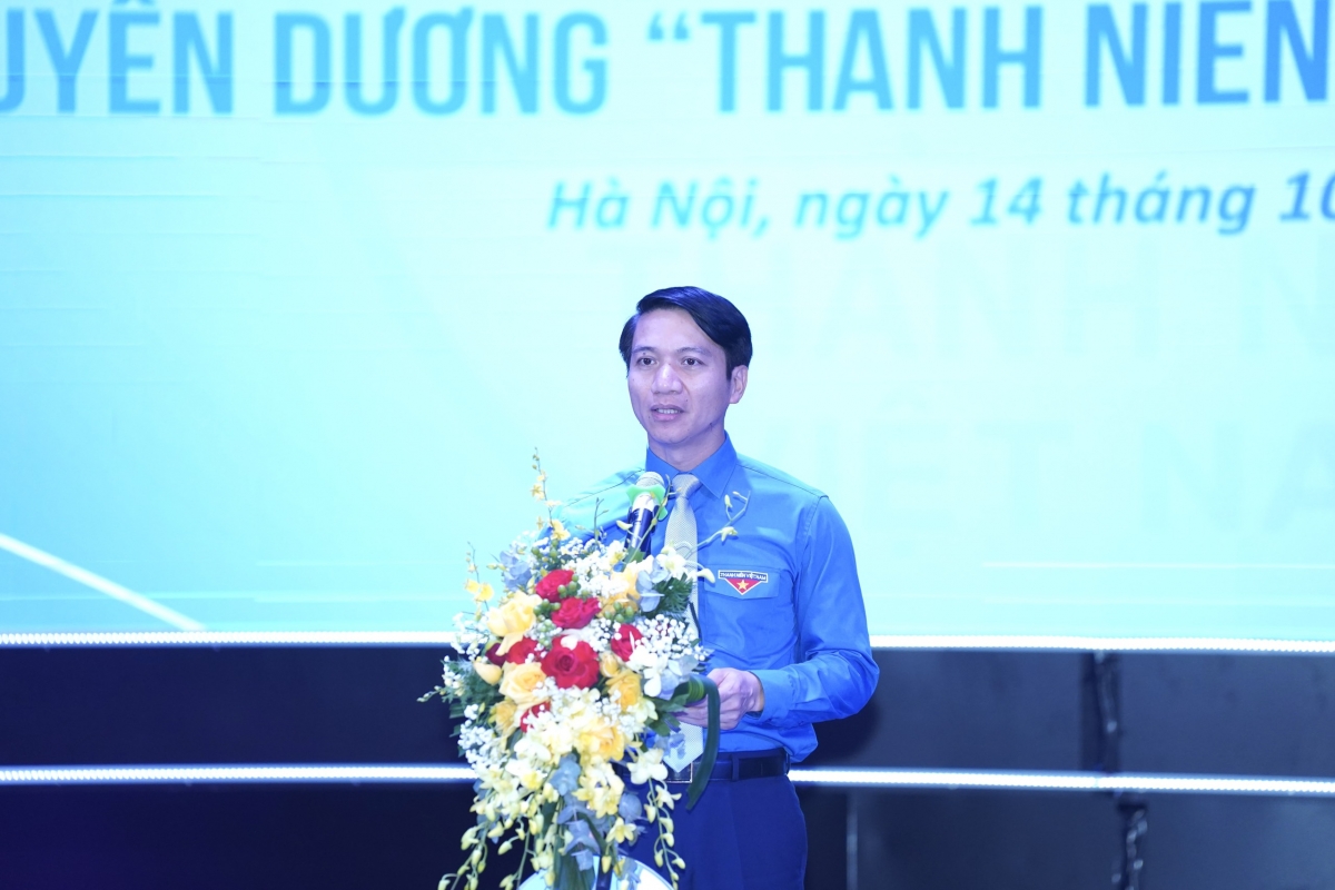 | Đồng chí Nguyễn Ngọc Lương, Bí thư Thường trực TƯ Đoàn, Chủ tịch Hội LHTN Việt Nam phát biểu tại lễ tuyên dương |