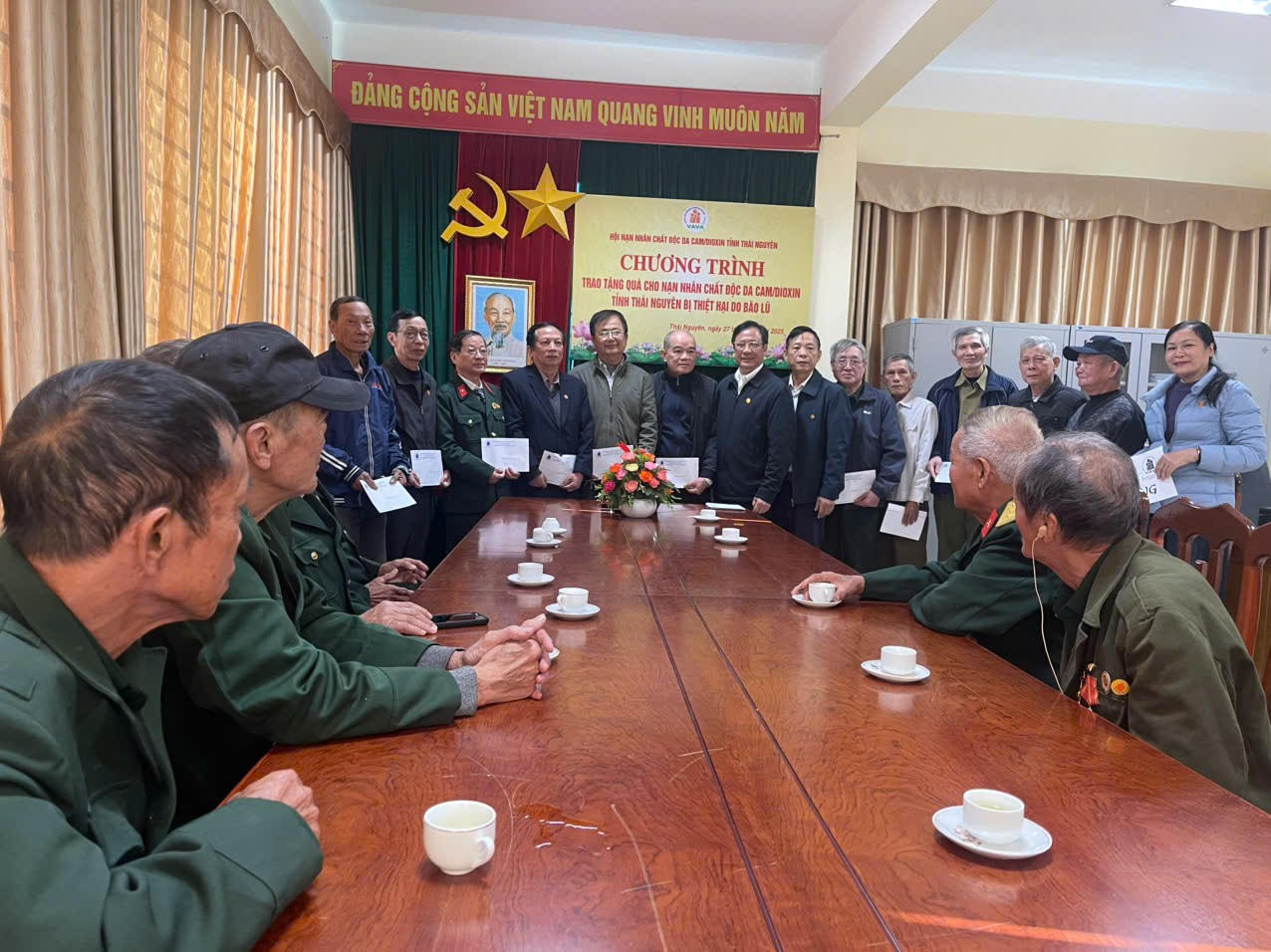 Ngày 27/11/2025, tại Văn phòng Hội Nạn nhân chất độc da cam/dioxin tỉnh Thái Nguyên, Hội đã tổ chức trao 170 suất quà hỗ trợ các gia đình nạn nhân chất độc da cam thuộc 11 xã trong tỉnh bị thiệt hại nặng do đợt lũ lụt vừa qua. Mỗi suất trị giá 1.000.000 đồng. Nguồn kinh phí trên được Trung ương Hội và Quỹ Nạn nhân chất độc da cam của tỉnh Thái Nguyên cấp.