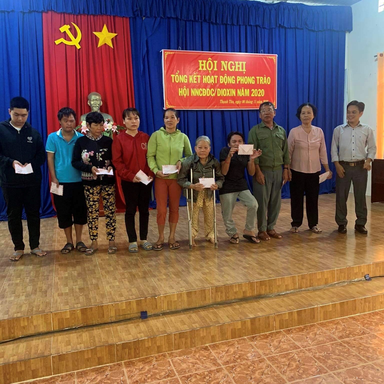 Trong năm 2020, Hội đã vận động các “mạnh thường quân” hỗ trợ sửa chữa nhà cho bà Phan Thị Diễm là nạn nhân khó khăn với số tiền trên 6 triệu đồng. Chăm sóc nạn nhân bệnh nặng nằm viện và thăm hỏi nạn nhân Lê Văn Bách hộ nghèo, neo đơn đã qua đời với số tiền 3,7 triệu đồng. Hội còn quan tâm chăm sóc bệnh nhân có hoàn cảnh khó khăn, neo đơn. Tham mưu cho ngành cấp trên lập danh sách cấp xe lăn, xe lắc. Cấp tiền hàng tháng cho 02 em là nạn nhân đi học, cho mượn vốn buôn bán, chăn nuôi nhỏ được 4 suất để nạn nhân có thêm nguồn thu nhập để nâng cao cuộc sống tốt hơn.
