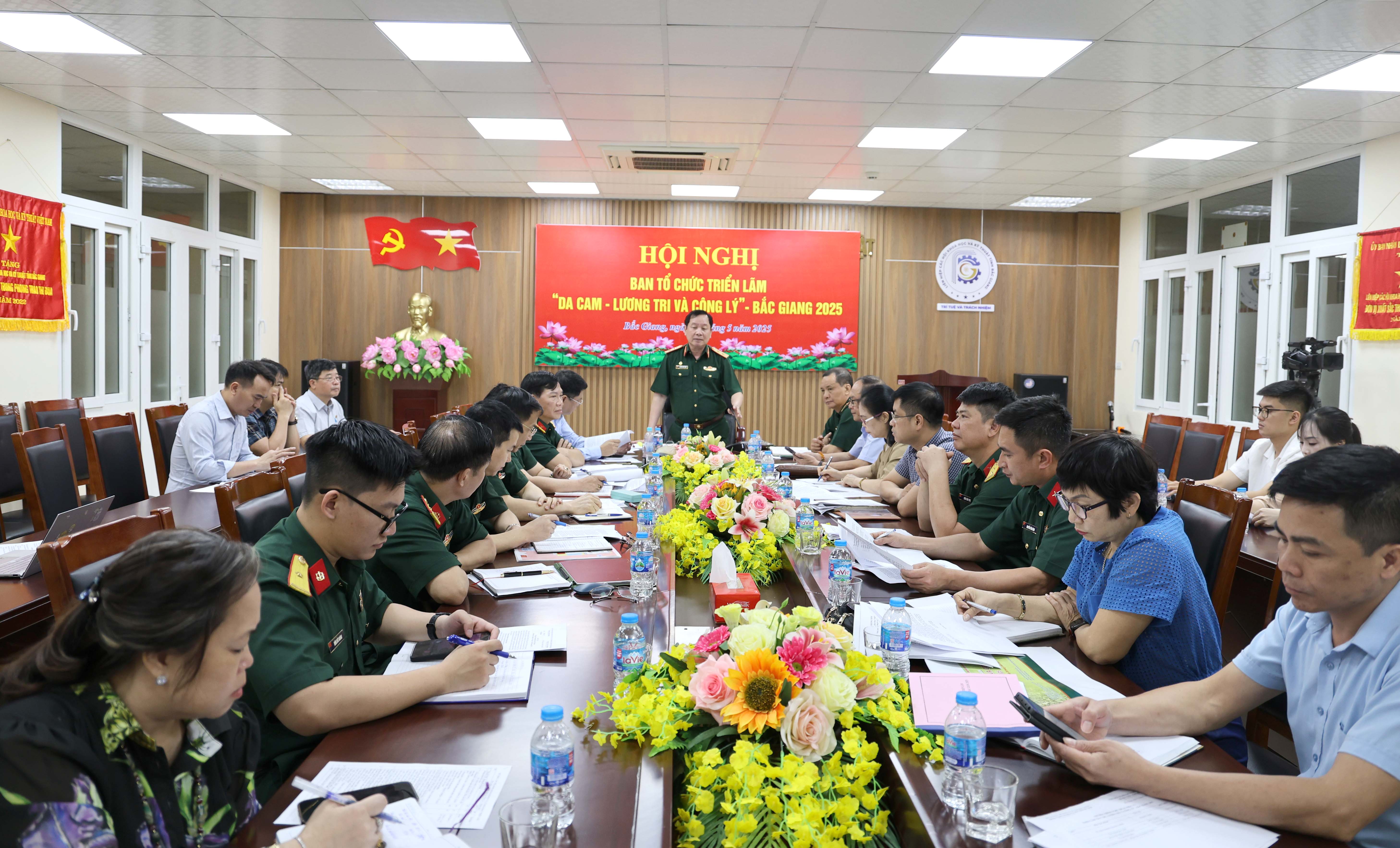 Trung tướng Nguyễn Hữu Chính, Ủy viên Đoàn Chủ tịch Trung ương MTTQ Việt Nam - Chủ tịch Hội NNCĐDC/dioxin Việt Nam - Trưởng Ban chỉ đạo triển lãm chủ trì hội nghị. Tham dự Hội nghị còn có: Thiếu tướng Đỗ Hồng Lâm, Phó Chủ tịch Thường trực Trung ương Hội, Phó trưởng Ban chỉ đạo, Trưởng Ban Tổ chức triển lãm; ông Đỗ Tuấn Khoa, Phó Giám đốc Sở Văn hoá - Thể thao và Du lịch tỉnh Bắc Giang, Phó trưởng Ban tổ chức triển lãm; bà Ma Thị Thìn Nga, Chủ tịch Tỉnh hội Bắc Giang, Phó trưởng Ban tổ chức triển lãm; các đại biểu của Cục Chính trị/Binh chủng Hóa học, Cục chính trị/Quân khu I, Trung tâm Hành động quốc gia khắc phục hậu quả chất độc hóa học và môi trường (NACCET) và các sở, ngành, đoàn thể liên quan của tỉnh Bắc Giang cùng tham dự Hội nghị.