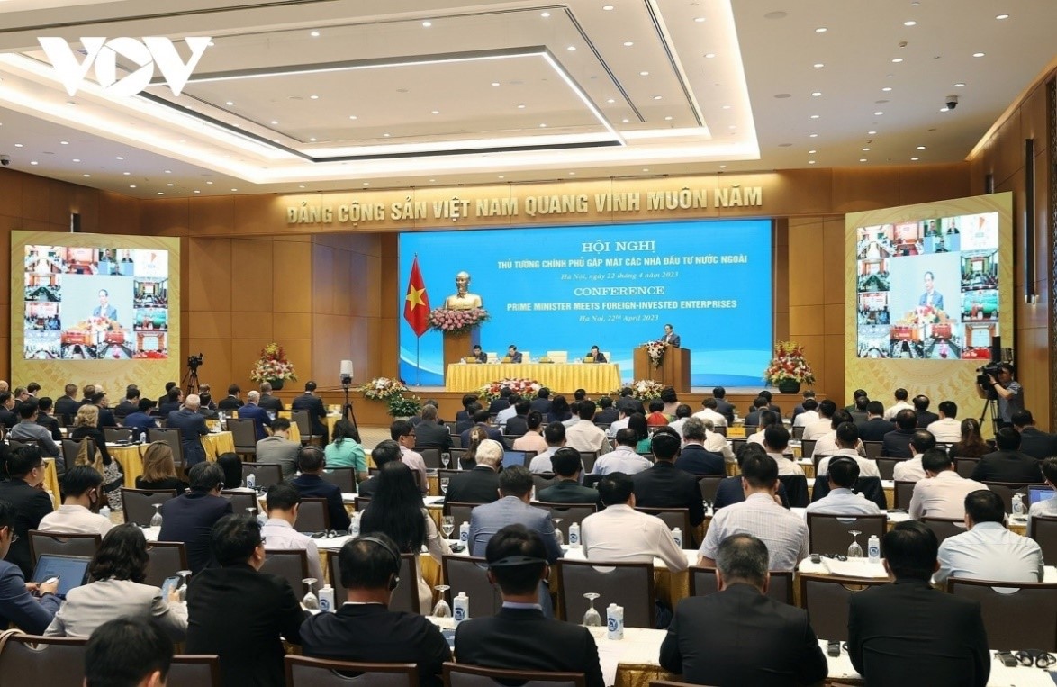 Phát biểu tại hội nghị, Thủ tướng Phạm Minh Chính nhấn mạnh, hội nghị hôm nay có ý nghĩa rất quan trọng, nhất là trong bối cảnh tình hình thế giới diễn biến nhanh, phức tạp, nhiều vấn đề chưa có tiền lệ, vượt dự báo; nền kinh tế Việt Nam tiếp tục gặp nhiều khó khăn, thách thức. Chính phủ Việt Nam mong muốn được lắng nghe các ý kiến và đề xuất, kiến nghị cụ thể của các nhà đầu tư nước ngoài để tiếp tục rà soát, hoàn thiện thể chế, pháp luật, cải thiện môi trường đầu tư kinh doanh trên nguyên tắc “lợi ích hài hoà, rủi ro chia sẻ” và với tinh thần đồng hành, tạo thuận lợi cho DN, nhà đầu tư.Thủ tướng khẳng định, Đảng, Nhà nước luôn đặc biệt quan tâm và xác định rõ, khu vực kinh tế có vốn đầu tư nước ngoài (khu vực FDI) là bộ phận cấu thành quan trọng của nền kinh tế Việt Nam, được khuyến khích, tạo điều kiện phát triển lâu dài, hợp tác và cạnh tranh lành mạnh với các khu vực kinh tế khác. Nhà nước tôn trọng, bảo vệ quyền và lợi ích chính đáng, hợp pháp của nhà đầu tư; bảo đảm hài hoà lợi ích giữa Nhà nước, nhà đầu tư và người lao động trong doanh nghiệp.