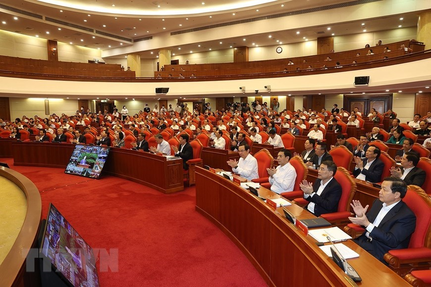 Đồng chủ trì hội nghị có các đồng chí Ủy viên Bộ Chính trị: Chủ tịch nước Nguyễn Xuân Phúc; Thủ tướng Chính phủ Phạm Minh Chính; Chủ tịch Quốc hội Vương Đình Huệ; Thường trực Ban Bí thư Võ Văn Thưởng.
