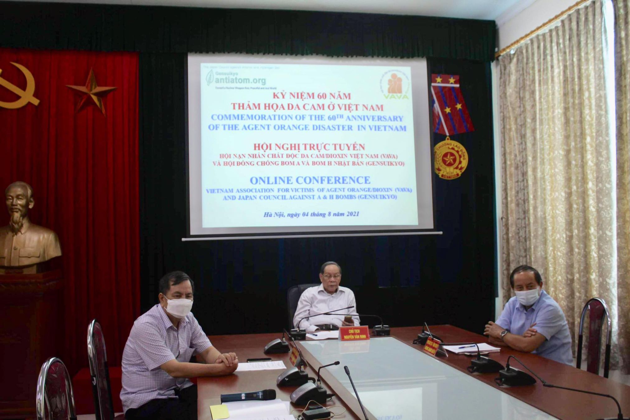 Hội nghị trực tuyến Hội Nạn nhân chất độc da cam/dioxin Việt Nam (VAVA)-Hội đồng Chống bom A & bom H Nhật Bản (Gensuikyo) đã được tiến hành từ 13h00-15h00 ngày 4/8/2021 với chủ đề “Vì sao chúng ta phải phối hợp hỗ trợ nạn nhân chất độc da cam Việt Nam và đấu tranh đòi thủ tiêu vũ khí hạt nhân và các loại vũ khí hủy diệt hàng loạt khác?”. Tham dự Hội nghị có 165 đại biểu Nhật Bản và Việt Nam.