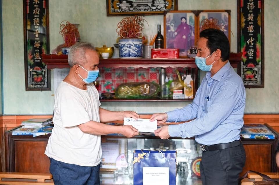 Ông Nguyễn Anh Tú, Phó Chủ tịch Thường trực Hội Nhà báo Hải Phòng trao quà động viên cho gia đình NNCĐDC.