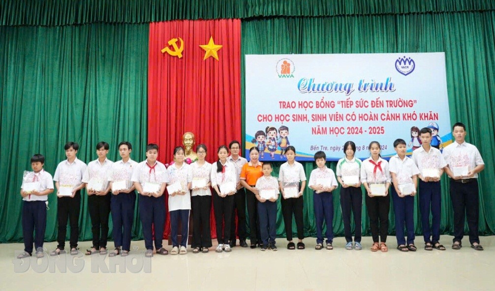 Trao học bổng cho học sinh, sinh viên có hoàn cảnh khó khăn năm học 2024-2025. Ảnh: Thành Lập