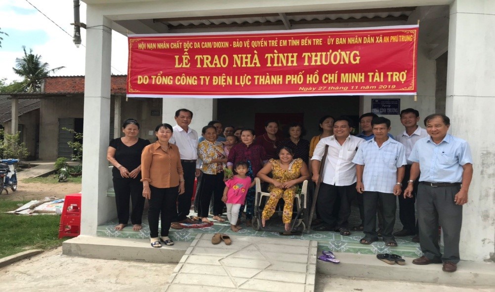 Ngày 27/11/2019, Hội NNCĐDC/dioxin - Bảo vệ quyền trẻ em tỉnh Bến Tre phối hợp với Tổng công ty Điện lực Thành phố Hồ Chí Minh tổ chức trao 03 căn nhà tình thương trị giá 220 triệu đồng cho hộ NNCĐDC xã An Phú Trung, xã Tân Mỹ huyện Ba Tri và xã Thạnh Phú Đông huyện Giồng Trôm. Trong đó, Tổng công ty Điện lực Thành phố Hồ Chí Minh hỗ trợ 150 triệu đồng, còn lại là của các gia đình và đoàn thể xã hội hỗ trợ.