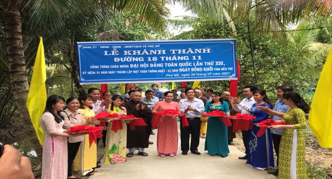 Ngày 28/1/2021, Hội NNCĐDC/dioxin - BVQTE huyện Mỏ Cày Bắc, tỉnh Bến Tre và Hòa thượng Thích Hoằng Tri , trụ trì Tổ Đình Vạn Đức – Tp Thủ Đức, TP.HCM phối hợp chính quyền địa phương xã Phú Mỹ và Thạnh Ngãi khánh thành 2 tuyến đường liên ấp xóm Cối, xã Thạnh Ngãi, ấp Phú Bình, xã Phú Mỹ chiều dài 1km, ngang 3 m, tổng kinh phí 980 triệu đồng, trong đó Hòa Thượng Thích Hoằng Tri vận động hỗ trợ 450 triệu đồng, nhân dân 2 địa phương đóng góp 530 triệu đồng và 300 ngày công lao động.