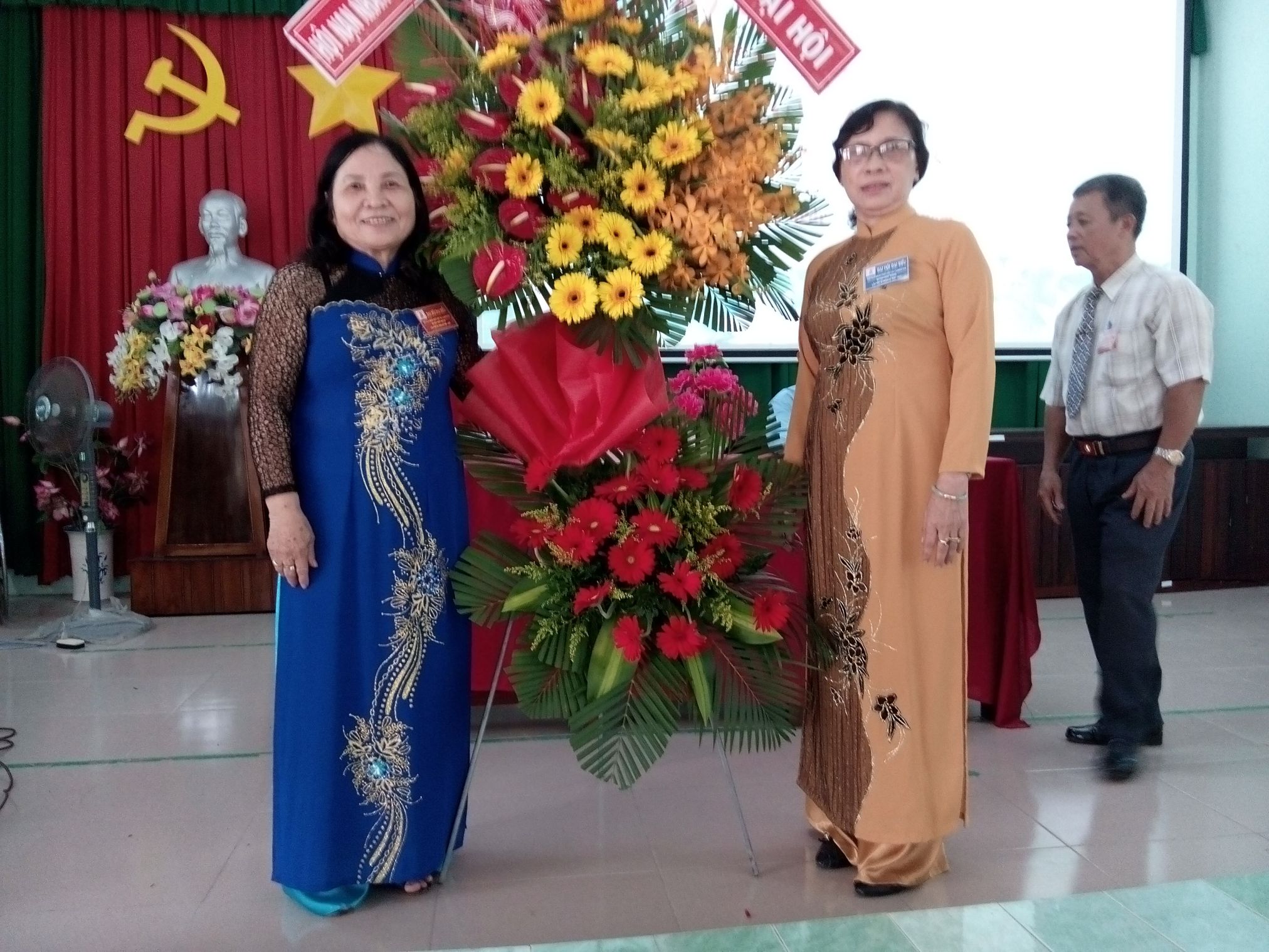 Bà Lê Thị Thu Hồng (bên phải) tặng lẵng hoa chúc mừng Đại hội.