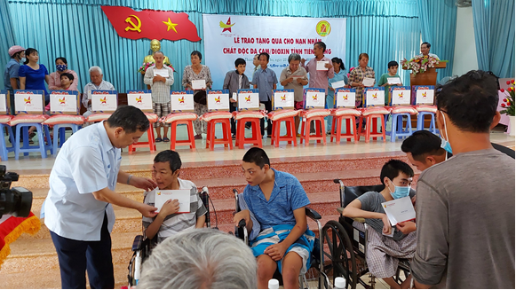 Ông Nguyễn Văn Khanh, Phó Chủ tịch Hội NNCĐDC/dioxin Việt Nam, Giám đốc Quỹ NNCĐDC Việt Nam thăm và tặng quà nạn nhân thành phố Mỹ Tho
