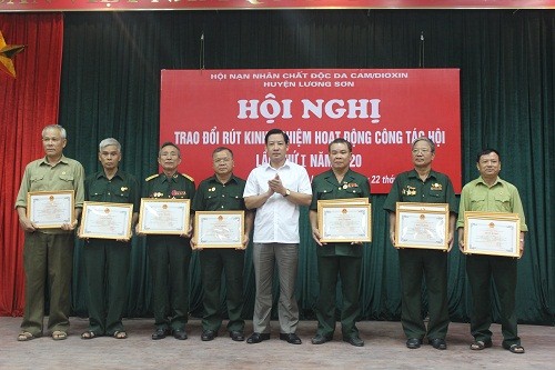Ngày 22/7, tại Lương Sơn (Hòa Bình), Hội NNCĐDC/dioxin huyện Lương Sơn đăng cai tổ chức Hội nghị trao đổi kinh nghiệm hoạt động công tác hội. Dự Hội nghị có ông Vũ Công Đào, Chủ tịch Hội NNCĐDC/dioxin tỉnh; ông Nguyễn Phương Đông, Phó Chủ tịch UBND huyện Lương Sơn cùng lãnh đạo Hội các huyện, thành phố trong tỉnh.