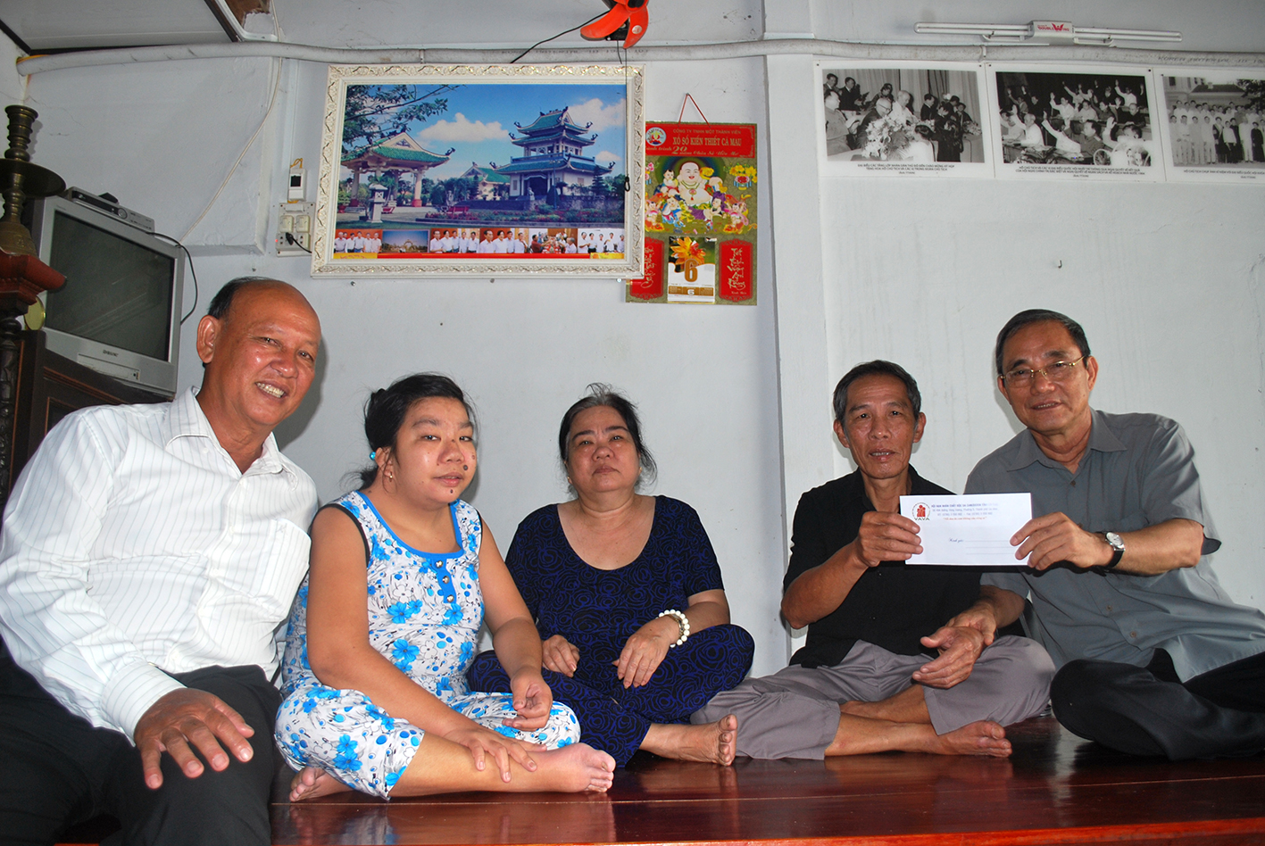 Gia đình ông Nguyễn Trường Thọ (khóm 6, phường 5) có 2 thế hệ NNĐDC, gồm ông, vợ ông - bà Thái Thị Bảy và con gái thứ 4 Nguyễn Hương Huệ. Thời chiến, ông Thọ từng tham gia chiến trường Campuchia. Do ảnh hưởng CĐDC, ông thường lên cơn sốt, mệt mỏi, không làm được việc nặng; bà Bảy đi lại khó khăn; chị Huệ khi sinh ra đã dị tật bẩm sinh, không thể tự sinh hoạt cá nhân. Đón nhận món quà hơn 2 triệu đồng tiền mặt của Thành hội Cà Mau trao tặng, ông Nguyễn Trường Thọ xúc động: “Bao năm qua, gia đình tôi luôn nhận được sự quan tâm, giúp đỡ của Đảng, Nhà nước, đó là niềm động viên to lớn để gia đình chúng tôi tiếp tục sống”.