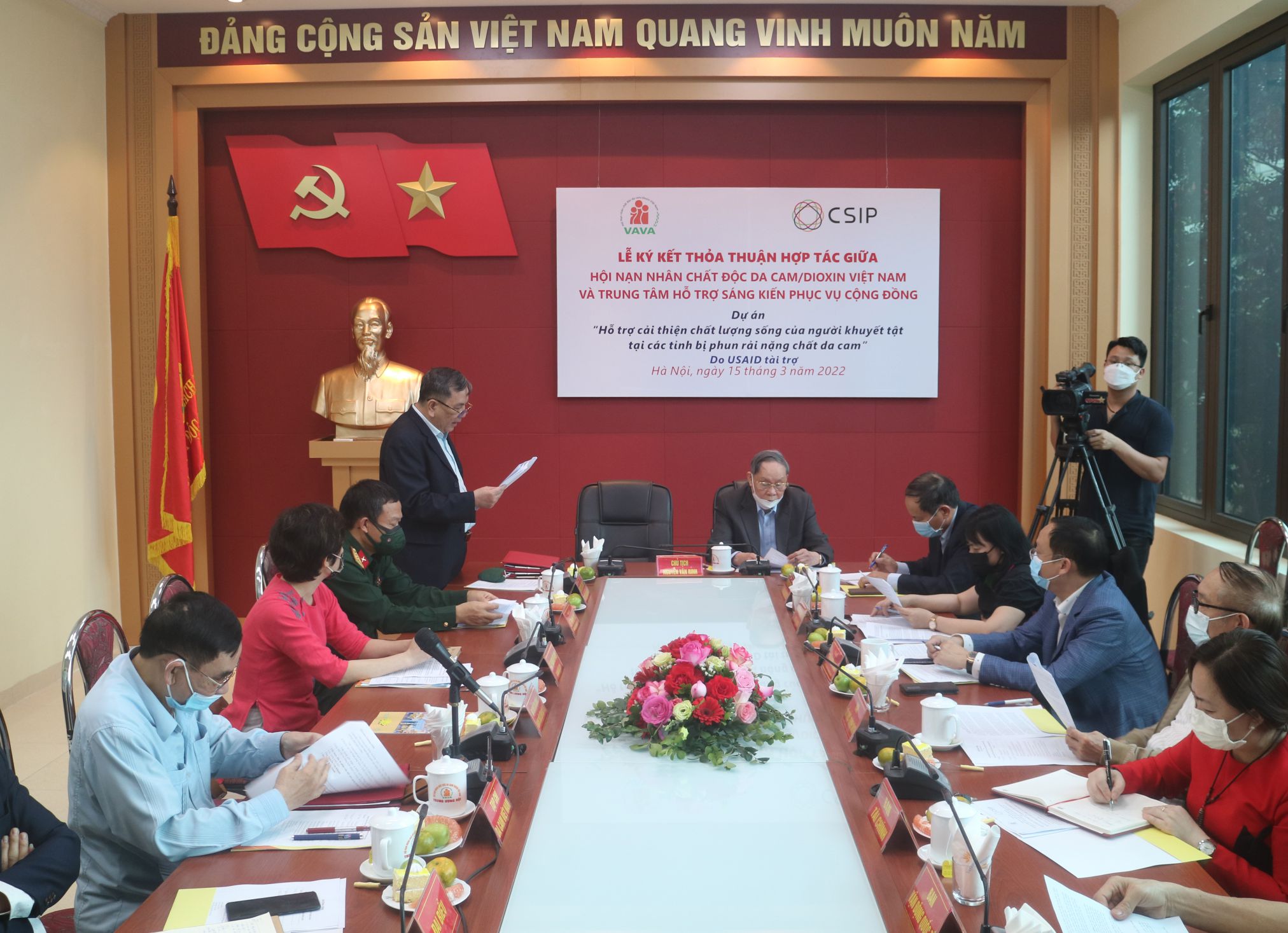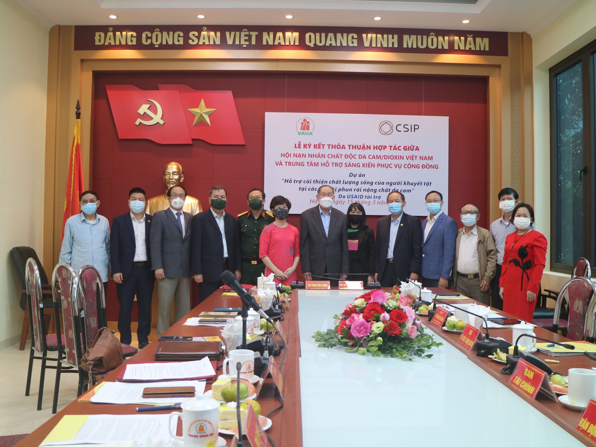 Tham dự và chứng kiến Lễ ký kết, về phía Trung ương NNCĐDC/dioxin Việt Nam có: Thượng tướng Nguyễn Văn Rinh, nguyên Ủy viên Trung ương Đảng, nguyên Thứ trưởng Bộ Quốc phòng, Chủ tịch Hội; Trung tướng, PGS.TS Đặng Nam Điền, Phó Chủ tịch – Tổng Thư ký; Ông Nguyễn Văn Khanh, Phó Chủ tịch – Giám đốc Quỹ NNCĐDC/dioxin Việt Nam. Về phía đại diện các cơ quan, bộ ngành liên quan có: Đại tá Lê Đình Vũ, Chánh Văn phòng Cơ quan Thường trực Ban Chỉ đạo quốc gia khắc phục hậu quả bom mìn và chất độc hóa học sau chiến tranh ở Việt Nam (Ban Chỉ đạo 701); Tiến sĩ Trần Đức Hùng, Phó Tổng giám đốc Trung tâm hành động quốc gia khắc phục hậu quả chất độc hóa học và môi trường (NACCET); bà Ann Marie Yastishock, Giám đốc USAID (dự trực tuyến); bà Phạm Kiều Oanh, Giám đốc CSIP; văn phòng, các ban, đơn vị trực thuộc Trung ương Hội; lãnh đạo các cấp hội VAVA tại 8 tỉnh thuộc phạm vi dự án gồm: Quảng Trị, Thừa Thiên Huế, Quảng Nam, Bình Định, Kon Tum, Bình Phước, Đồng Nai và Tây Ninh cũng tham dự Lễ ký kết dưới hình thức trực tuyến.