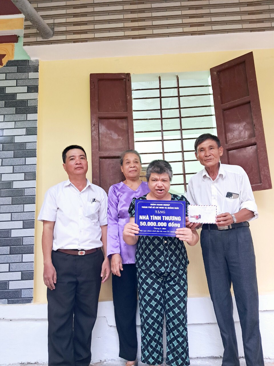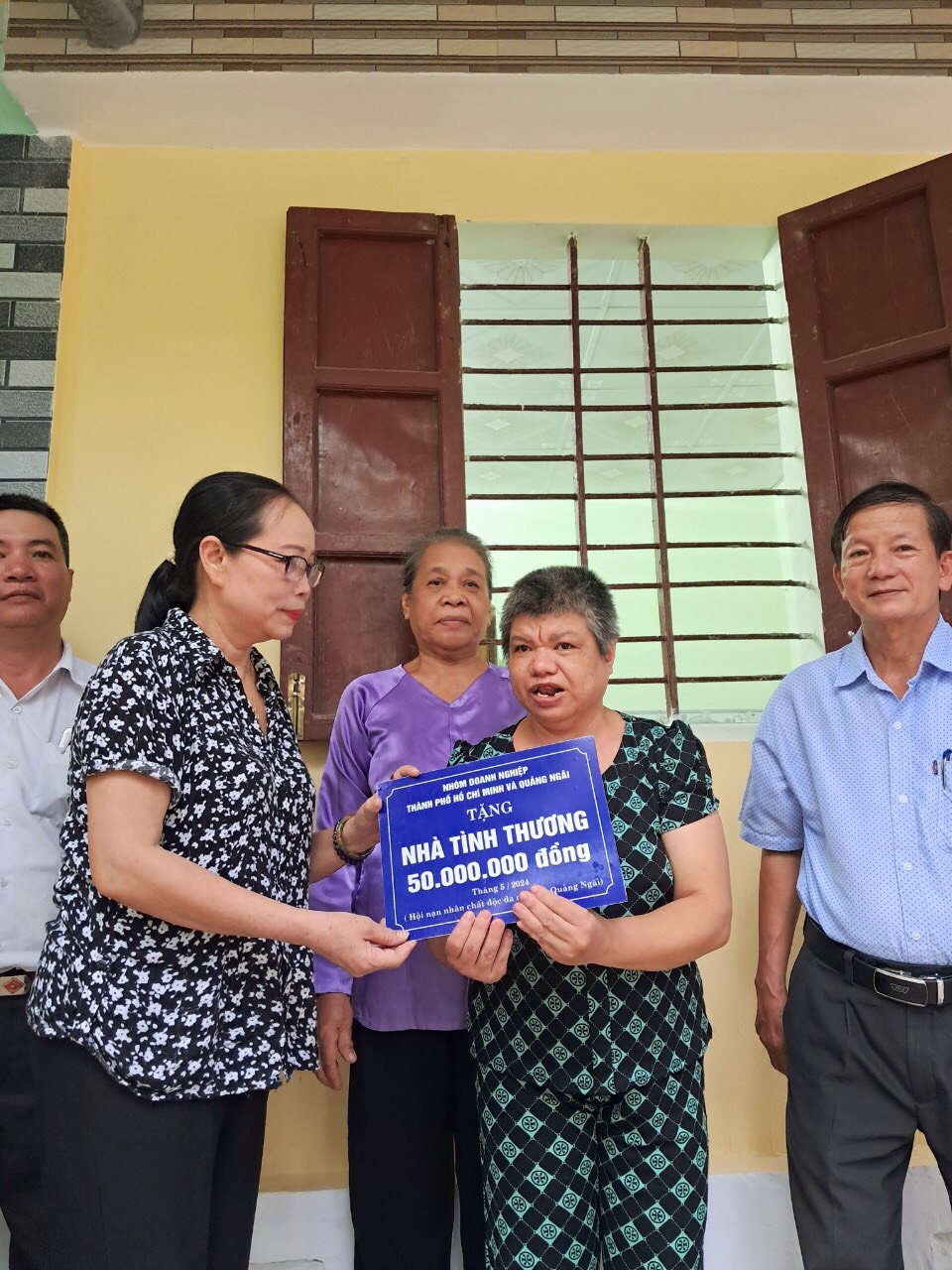 Dự bàn giao nhà có: ông Huỳnh Tấn Tới, Phó Chủ tich Hội NNCĐDC/dioxin tỉnh Quảng Ngãi; ông Đinh Văn Thái, Phó Chủ tịch Ủy ban MTTQ thành phố Quảng Ngãi; ông Nguyễn Lai, Bí thư Đảng uỷ xã Tịnh Hòa và đại diện UBND, Ủy ban MTTQ xã Tịnh Hòa; Ban Công tác Mặt trận thôn Quang Mỹ; bà Mai Thị Hạnh Dung đại diện nhà tài trợ.