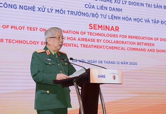 Phát biểu tại hội thảo, Thượng tướng Nguyễn Chí Vịnh biểu dương và đánh giá cao sự chỉ đạo sát sao của BTL Hóa học; sự tích cực, chủ động của Trung tâm Công nghệ xử lý môi trường, BTL Hóa học trong hợp tác với Tập đoàn Shimizu để hoàn thành hoạt động thử nghiệm này.