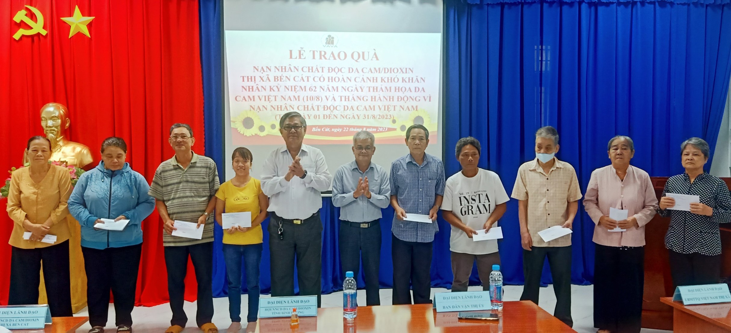 Hội Nạn nhân chất độc da cam/dioxin thị xã Bến Cát được sự hỗ trợ của Hội Nạn nhân chất độc da cam/dioxin tỉnh Bình Dương đã tổ chức tặng quà cho nạn nhân chất độc da cam có hoàn cảnh khó khăn trên địa bàn thị xã.