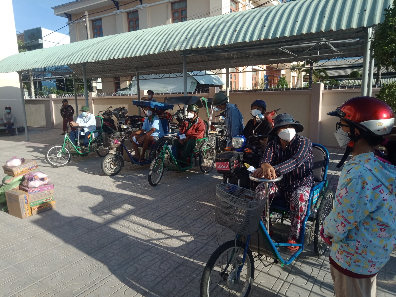 Nạn nhân khuyết tật chờ nhận quà tại Khối Vận thị xã Gò Công