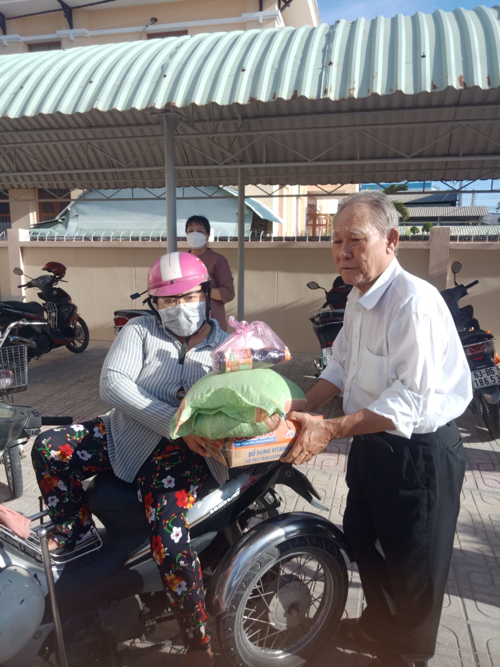 Ông Lê Chiêu Bình, Chủ tịch Hội thị xã Gò Công trao quà cho nạn nhân