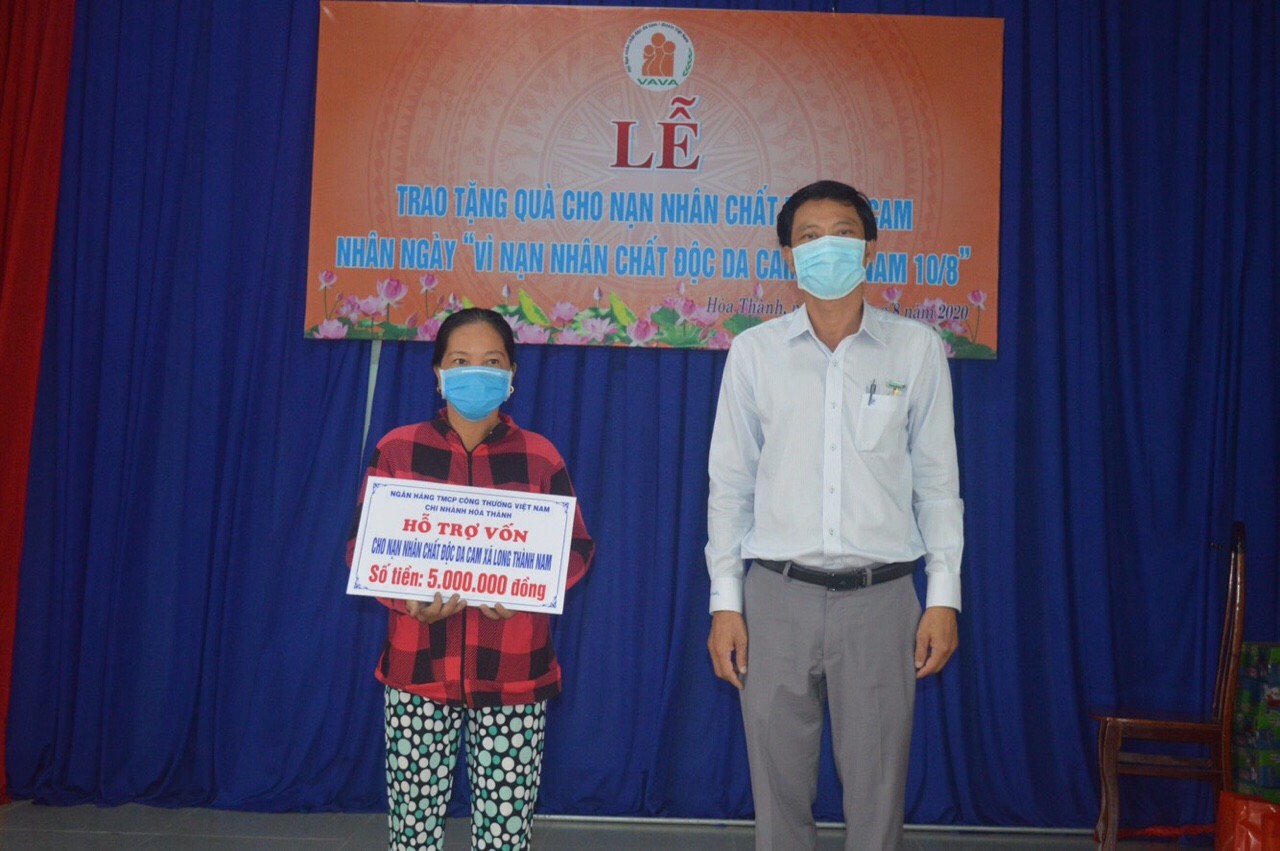 Về giúp vốn cho nạn nhân làm kinh tế gia đình, Hội đã hỗ trợ 20 gia đình số tiền 60 triệu. Đặc biệt, nhân dịp Kỷ niệm 59 năm Ngày Thảm họa da cam Việt Nam, được sự quan tâm của BGĐ Ngân hàng Công thương Hòa Thành ủng hộ Hội 10 triệu, Hội đã hỗ trợ vốn cho 1 gia đình nạn nhân 5 triệu để mua ve chai. Ngoài ra sắp tới Hội tỉnh sẽ hỗ trợ 1 gia đình nạn nhân phường Hiệp Tân 10 triệu để buôn bán nhỏ.