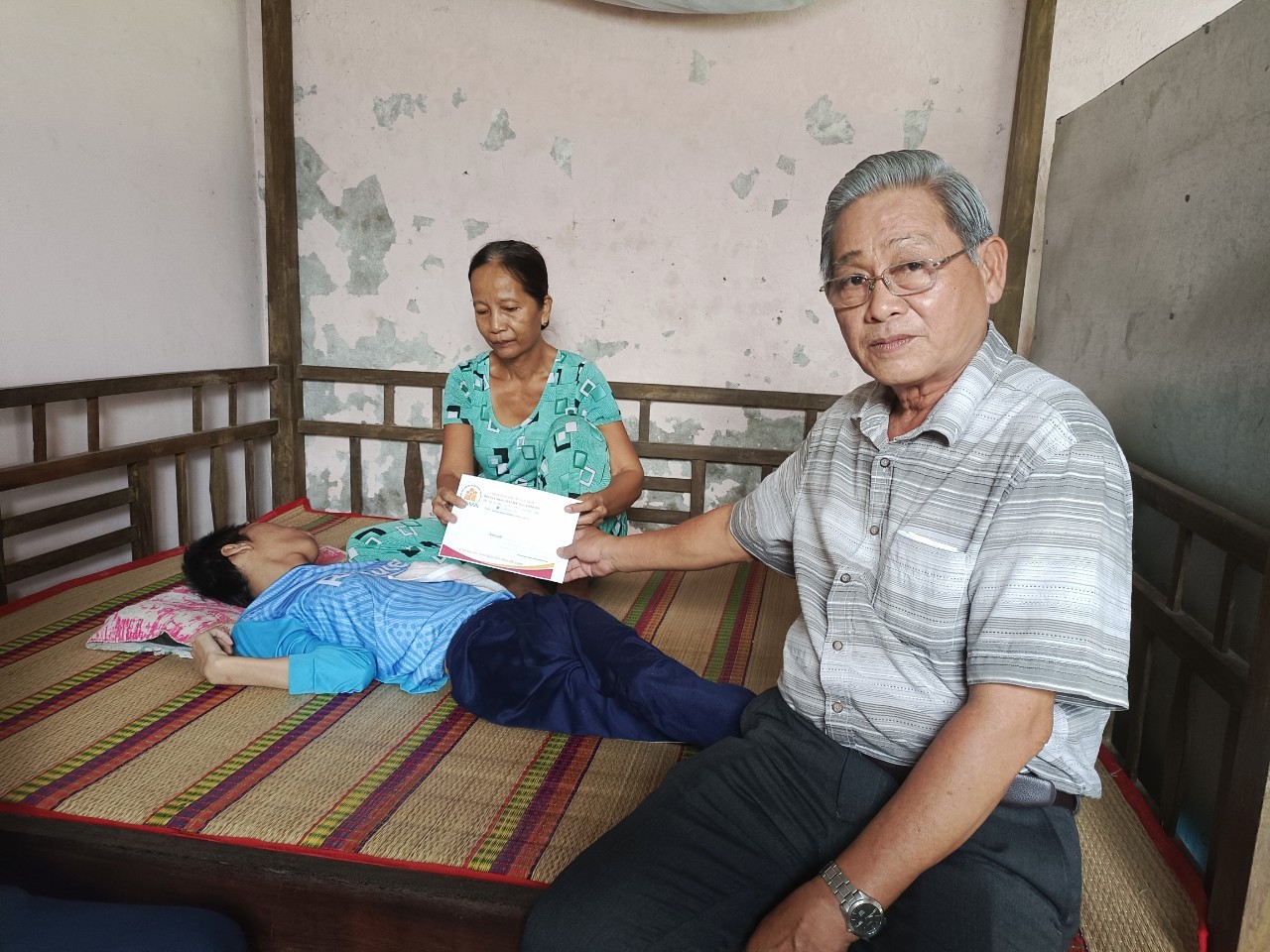 Thay mặt Đoàn ông Nguyễn Hùng, Chủ tịch Hội Nạn nhân chất độc da cam/dioxin tỉnh Sóc Trăng đã thăm hỏi động viên 02 nạn nhân mang bệnh nặng: anh Võ Văn Đạt (sinh năm 2000, phường Vĩnh Mỹ, phường 3, thị xã Ngã Năm), bị liệt tứ chi không có khả năng nhận thức, không đất sản xuất, thu nhập chính nhờ buôn bán tạp hóa nhỏ, gia đình rất khó khăn và anh Lại Văn Định (sinh năm 1976, ấp Vinh Sử, phường 3, thị xã Ngã Năm), anh bị bại liệt bẩm sinh, mọi sinh hoạt đều phụ thuộc người thân, hiện anh sống cùng mẹ đã ngoài 70 tuổi, cuộc sống gia đình gặp rất nhiều khó khăn. Tỉnh hội đã hỗ trợ gia đình các nạn nhân 5 triệu đồng, mong gia đinh vơi bớt khó khăn. Ông Nguyễn Hùng ân cần thăm hỏi sức khỏe, cuộc sống của nạn nhân và mong gia đình nhiều sức khỏe, cố gắng chăm lo cho nạn nhân chu đáo.