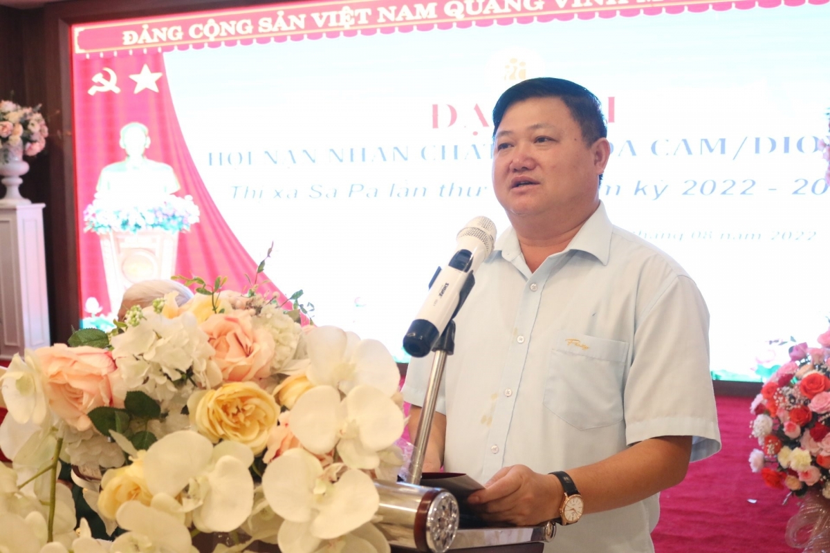 Ngày 10/8/2022, Hội Nạn nhân chất độc da cam/dioxin thị xã Sa Pa, tỉnh Lào Cai đã tổ chức Đại hội lần thứ II, nhiệm kỳ 2022 - 2027. Tới dự và chỉ đạo Đại hội có đồng chí Bùi Sỹ Thu, Chủ tịch Hội NNCĐDC/dioxin tỉnh Lào Cai; đồng chí Thào A Sinh, Phó Bí thư Thường trực Thị ủy Sa Pa; lãnh đạo một số phòng, ban, cơ quan, UBND các xã, phường và 33 đại biểu chính thức.