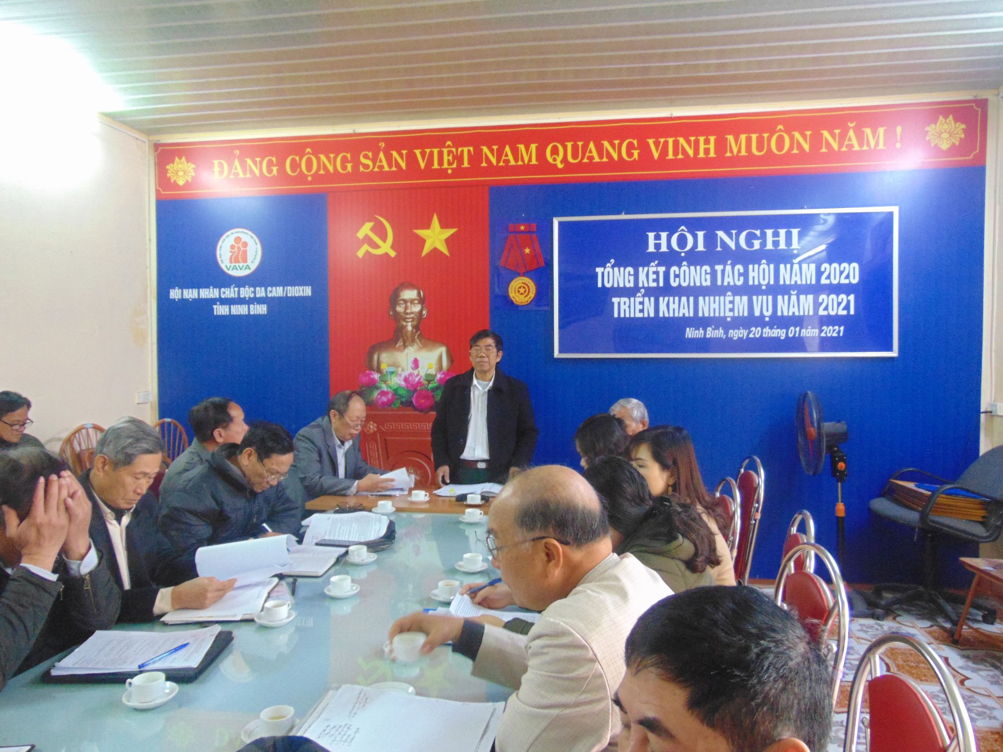 Đồng chí Tạ Minh Chính, Chủ tịch Hội NNCĐDC/dioxin tỉnh Ninh Bình chủ trì Hội nghị Tổng kết năm 2020.