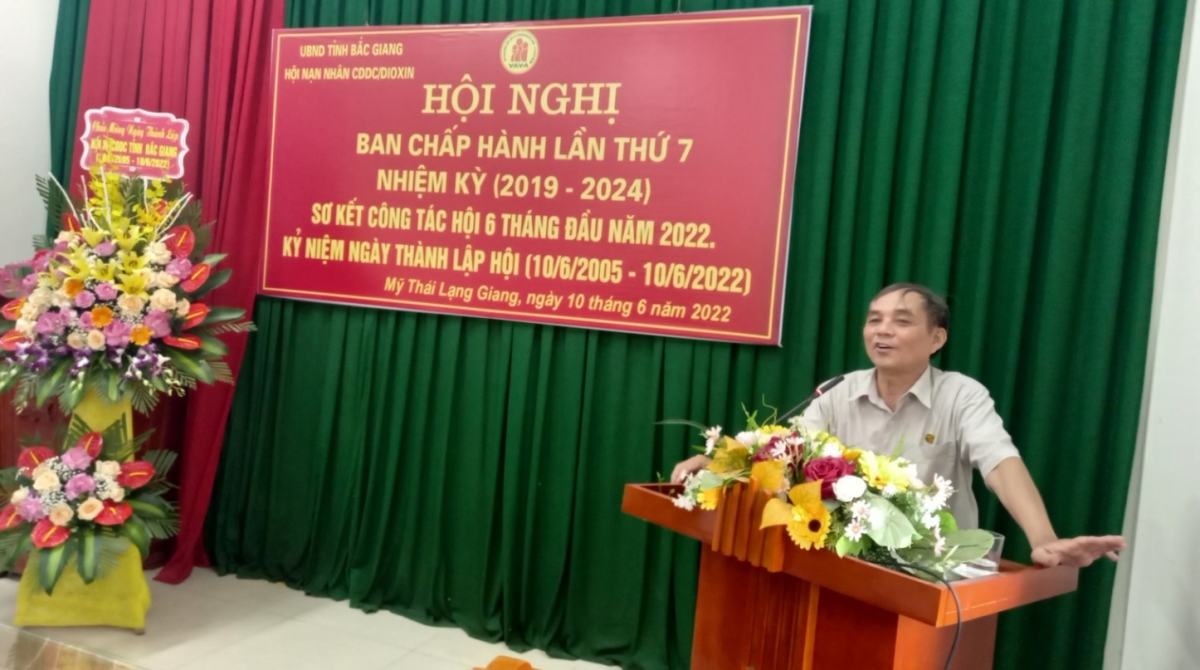 Ông Thân Văn Nhau, Chủ tịch Hội NNCĐDC/dioxin tỉnh ôn lại truyền thống 17 năm hoạt động của Hội tỉnh Bắc Giang. Báo cáo nêu rõ: Toàn tỉnh có 10/10 huyện Hội, thành Hội và 209/209 Hội cơ sở xã, phường, thị trấn được củng cố, kiện toàn. Tổng số Chi hội trong toàn tỉnh là 1.302; Tổng số hội viên là 18.361 người. Tổng số người hoạt động kháng chiến (HĐKC) bị nhiễm chất độc hóa học được hưởng chế độ là 6.121 người.