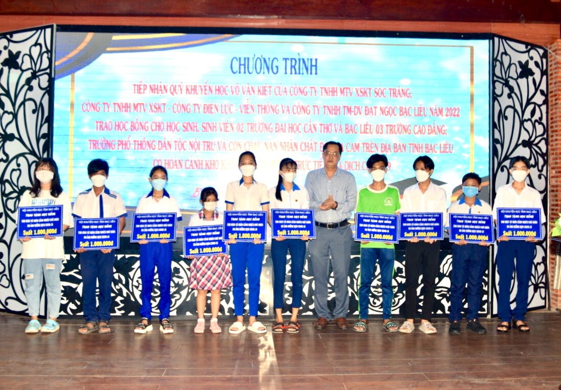 Cũng thời gian này, Tỉnh hội phối hợp cùng Hội Khuyến học tỉnh Bạc Liêu trao 32 suất học bổng cho học sinh là con các gia đình nạn nhân chất độc da cam có hoàn cảnh khó khăn thuộc 07 huyện, thị xã, thành phố trong tỉnh, mỗi suất học bổng trị giá 1.000.000 đồng, tổng giá trị các suất học bổng là 32.000.000 đồng. Nguồn kinh phí trên do Công ty Xổ số kiến thiết tỉnh Sóc Trăng tài trợ.
