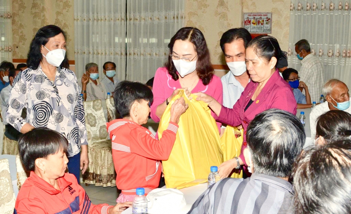 | Bà Lê Thị Ái Nam, Phó Bí thư Thường trực Tỉnh ủy và bà Võ Thị Hồng Thoại, Chủ tịch Tỉnh hội Bạc Liêu thăm hỏi, tặng quà cho nạn nhân chất độc da cam |