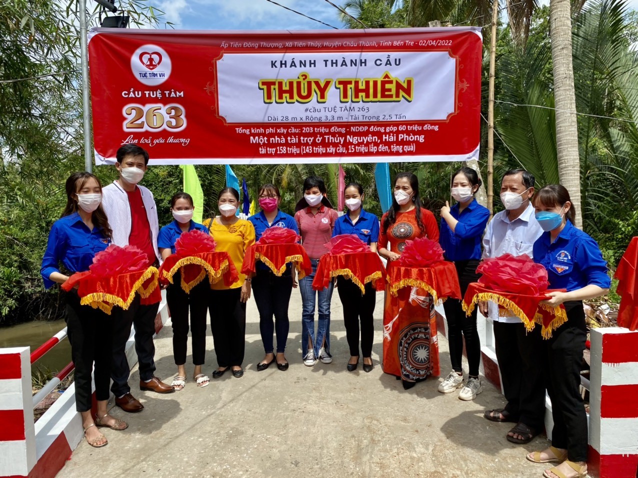 Hưởng ứng phong trào xây dựng nông thôn mới tại tỉnh Bến Tre và được sự hỗ trợ kinh phí của Nhóm Tuệ Tâm VH-thành phố Hồ Chí Minh, ngày 02/4/2022, Hội NNCĐDC/dioxin- BVQTE tỉnh Bến Tre phối hợp với Nhóm Tuệ Tâm VH và chính quyền xã Tiên Thủy, huyện Châu Thành tổ chức lễ khánh thành cầu Thủy Thiên (cầu Tuệ Tâm 263) tại ấp Tiên Đông Thượng, xã Tiên Thủy, huyện Châu Thành, tỉnh Bến Tre.