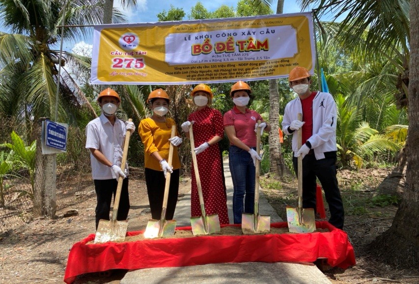 Cũng trong ngày 02/4/2022, Hội tỉnh Bến Tre cùng Nhóm Tuệ Tâm VH- TP.HCM và chính quyền xã Định Trung, huyện Bình Đại tổ chức lễ khởi công làm cầu Bồ Đề Tâm (cầu Tuệ Tâm 275) tại ấp Bến Cát, xã Định Trung, huyện Bình Đại, tỉnh Bến Tre.