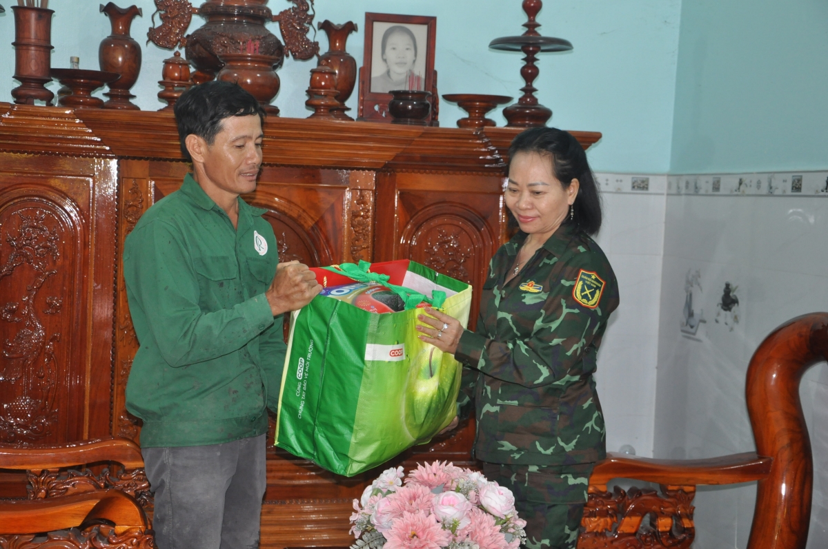 | Bà Nguyễn Thị Thuận, Phó Chủ tịch Thường trực Tỉnh hội tặng quà cho gia đình nạn nhân chất độc da cam (2 ảnh trên) |