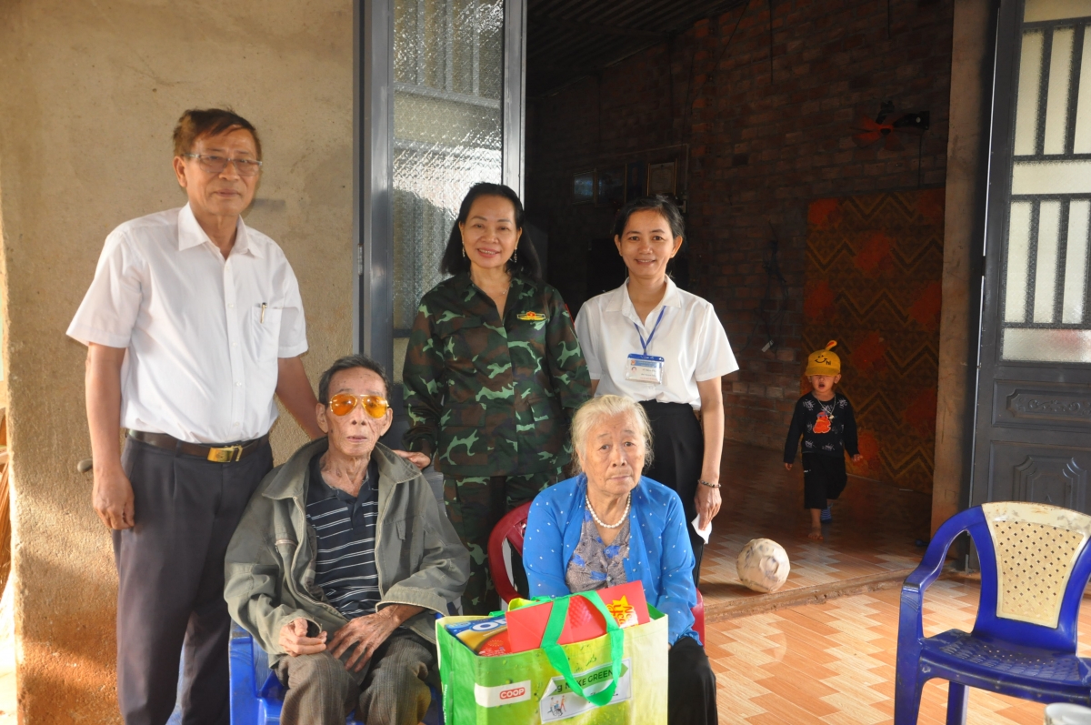 | Ông Bùi Văn Thành, Chủ tịch Tỉnh hội tặng quà cho gia đình nạn nhân chất độc da cam (2 ảnh trên) |