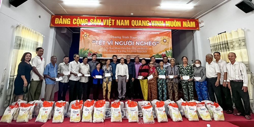 Nhân dịp Tết Giáp Thìn 2024, ngày 22 và 23 tháng 01 năm 2024, Hội Nạn nhân chất độc da cam/dioxin tỉnh Cà Mau; Ủy ban Mặt trận Tổ quốc tỉnh, phối hợp với đơn vị tài trợ là Công ty Cổ phần phát triển Sài Gòn (Xi măng Sài Gòn); Tổ chức Thiện nguyện Nam Việt cùng đại diện chính quyền, mặt trận, đoàn thể, huyện, xã tổ chức trao tặng quà Tết Giáp Thìn 2024, cho nạn nhân chất độc da cam, người khuyết tật, hộ nghèo và hộ có hoàn cảnh khó khăn trên địa bàn 3 huyện: Thới Bình, U Minh và Trần Văn Thời.