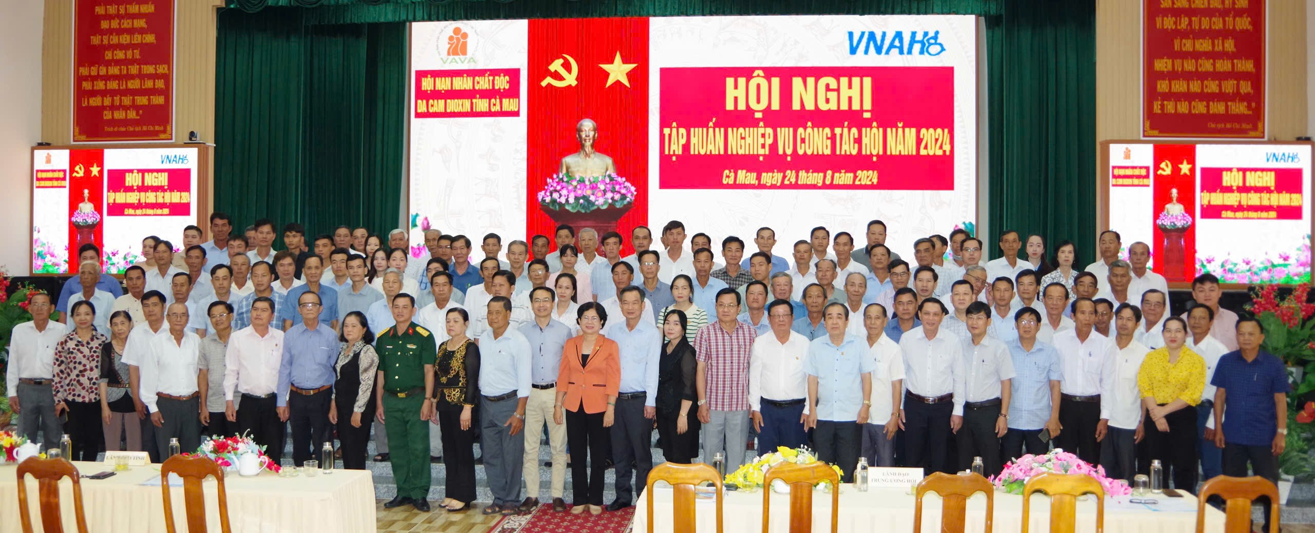 Ngày 24/8, Hội NNCĐDC/dioxin tỉnh Cà Mau đã tổ chức hội nghị Tập huấn nghiệp vụ công tác Hội năm 2024, tham gia lớp tập huấn gồm có 130 đồng chí Ủy viên Ban thường vụ, Ủy viên BCH Tỉnh hội; lãnh đạo các huyện, thành Hội; Chủ tịch Hội NNCĐDC/dioxin xã, phường, thị trấn trong tỉnh. Dự hội nghị Tập huấn có bà Võ Thị Thanh Nga, Ủy viên Thường vụ Trung ương Hội NNCĐDC/dioxin Việt Nam; đại biểu lãnh đạo Ban Dân vận Tỉnh ủy, Ủy Ban MTTQ tỉnh; Sở Lao động -Thương binh và Xã hội tỉnh; Bộ Chỉ huy Quân sự tỉnh; Sở Tài nguyên và Môi trường và Sở Y tế tỉnh Cà Mau.