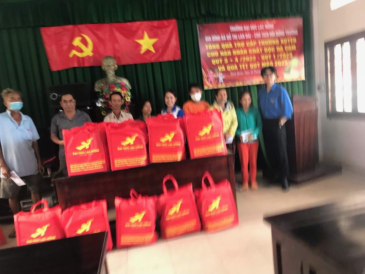 Chiều 14/1/2023 - Đại diện Trường ĐH Lạc Hồng đã đến thăm và trợ cấp thường xuyên và trao tặng quà Tết Quý Mão cho 20 nạn nhân chất độc da cam của huyện Định Quán với tổng trị giá 80.000.000đ (4tr/nạn nhân).