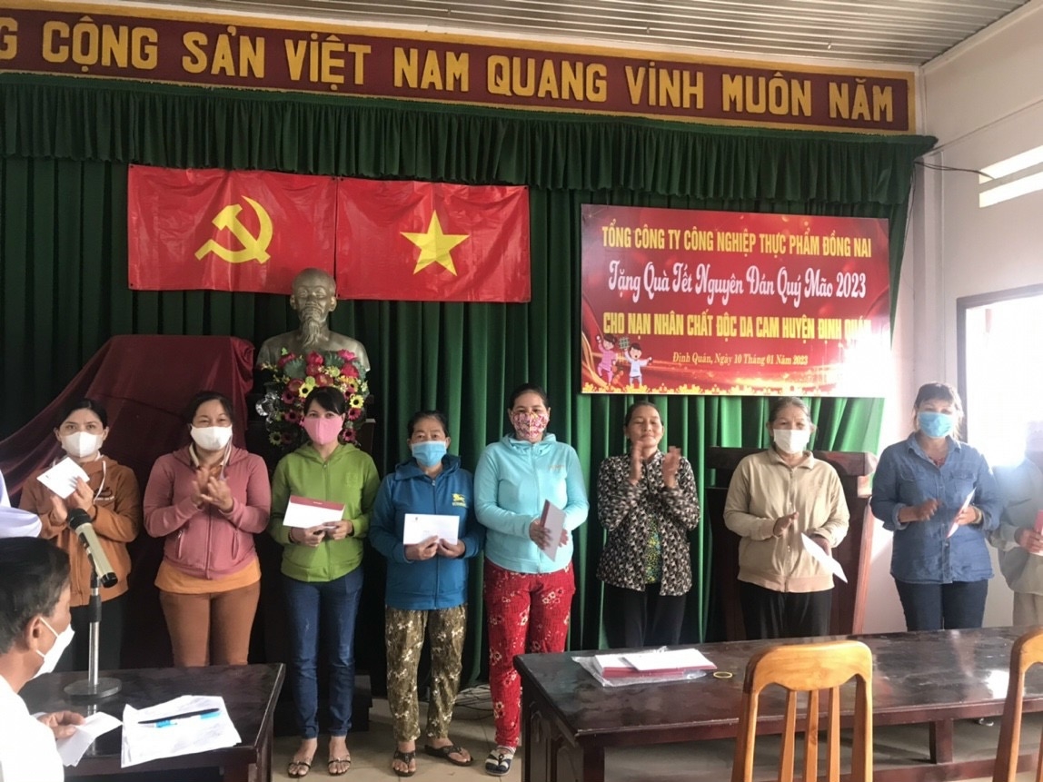 Ngày 10/1/2023 Tổng công ty CNTP Đồng Nai trao tặng 50 phần quà tết cho 50 hoàn cảnh gia đình nạn nhân da cam gặp khó khăn, mỗi phần quà trị giá 500.000đ tiền mặt.