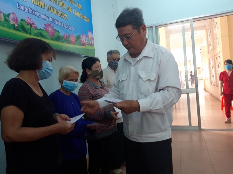 | Ông Mai Văn Nhỏ, Phó Chủ tịch Hội NNCĐDC/dioxin tỉnh tặng quà cho NNCĐDC huyện Long Thành |