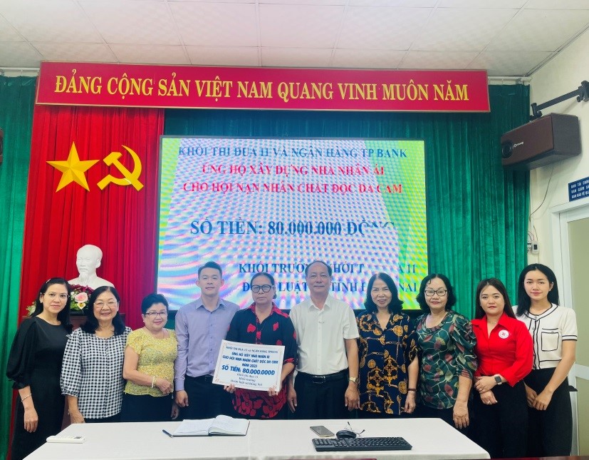 Dự tiếp nhận tiền ủng hộ có: lãnh đạo Hội Nạn nhân chất độc da cam/dioxin tỉnh Đồng Nai, đại diện lãnh đạo Khối thi đua 11 và Ngân hàng TP Bank. Đại diện lãnh đạo Khối thi đua 11 và Ngân hàng TP Bank đã trao bảng tượng trưng 80 triệu đồng cho Hội NNCĐDC/dioxin tỉnh Đồng Nai.