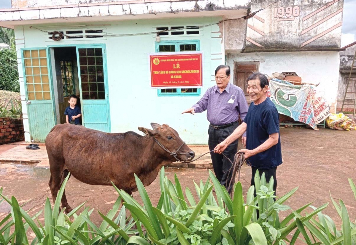 Tương tự, Hội NNCĐDC/dioxin huyện Kbang đã tích cực vận động các mạnh thường quân trong, ngoài tỉnh giúp đỡ NNCĐDC có hoàn cảnh đặc biệt khó khăn. Ông Chu Văn Định, Chủ tịch Hội NNCĐDC/dioxin huyện Kbang thông tin: Từ năm 2018 đến nay, Hội đã vận động được hơn 200 triệu đồng để giúp đỡ các nạn nhân. Kêu gọi các mạnh thường quân xây mới và sửa chữa 4 căn nhà cho các NNCĐDC khó khăn về nhà ở, với tổng số tiền trên 150 triệu đồng. Hàng năm, vào các ngày lễ, tết, Ngày Vì NNCĐDC (10-8), Hội tổ chức thăm, tặng quà cho 93 NNCĐDC trên địa bàn huyện. Với những nạn nhân qua đời, Hội hỗ trợ mỗi trường hợp 1 triệu đồng. Tỉnh hội phân bổ cho Hội 50 triệu đồng từ Quỹ hỗ trợ phát triển sản xuất của Trung ương Hội NNCĐDC/dioxin Việt Nam hỗ trợ cho 5 gia đình NNCĐDC (10 triệu đồng/hộ) không tính lãi để mua bò sinh sản về nuôi, phát triển kinh tế gia đình.