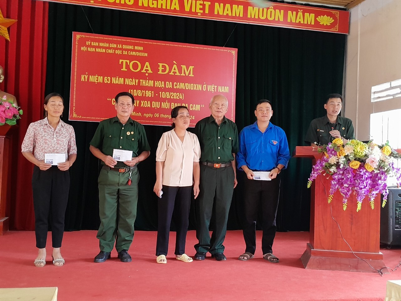 Ngày 6/8, được sự ủy quyền của Tỉnh ủy, UBND, Hội Nạn nhân chất độc da cam/dioxin tỉnh Hà Giang chủ trì đoàn đi thăm tặng quà cho NNCĐDC tại 3 huyện: Vị Xuyên, Bắc Quang và Quang Bình. Tham gia đoàn có ông Triệu Đức Thanh, nguyên Chủ tịch Tỉnh hội; Đại tá Nguyễn Thế Đàm, Chủ tịch Tỉnh hội Hà Giang; đồng chí Nguyễn Đình Tác, Phó Chủ tịch Tỉnh hội cùng các cán bộ Thường trực Huyện hội Vị Xuyên, Bắc Quang, Quang Bình. Đoàn đã trao tặng 60 suất quà, mỗi suất trị giá 1.500.000 đồng. Tổng số tiền là 90.000.000 đồng.