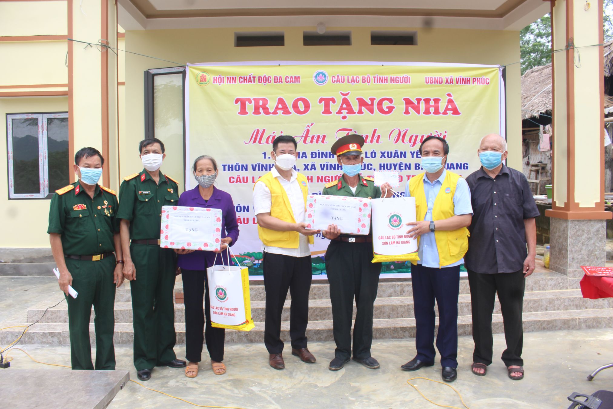 Trước đó, các gia đình nạn nhân trên đều có hoàn cảnh đặc biệt khó khăn về nhà ở, được Hội NNCĐDC/dioxin tỉnh kết nối giới thiệu, Câu lạc bộ tình người Sơn Lâm Hà Giang đã thực hiện khảo sát và quyết định hỗ trợ mỗi hộ 60 triệu đồng. Trong buổi trao tặng nhà, mỗi gia đình còn được các tổ chức tặng nhiều phần quà ý nghĩa (như chăn, ấm chén…). Được nhận nhà mới 4 gia đình nạn nhân rất phấn khởi, càng tin tưởng hơn vào đường lối của Đảng, chính sách pháp luật của Nhà nước, tình yêu thương nhân ái của cộng đồng dành cho họ.
