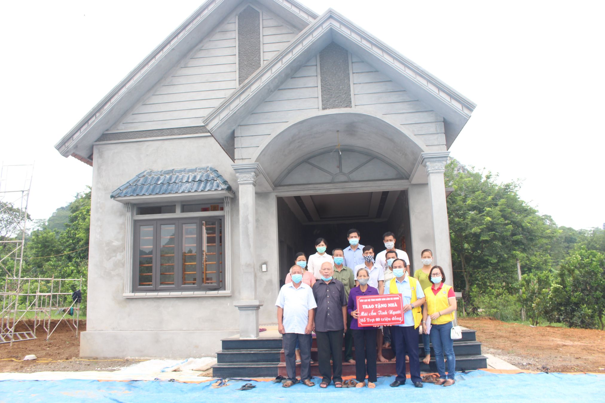 Bà Vũ Thị Nguyệt cùng đại biểu trước ngôi nhà mới được tặng.