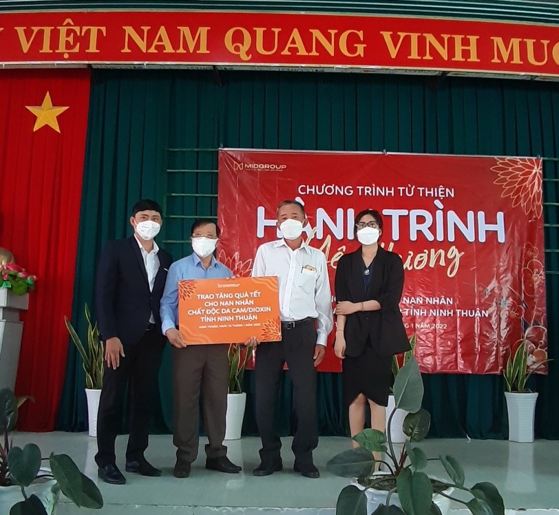 Đây là năm thứ 2, Tập đoàn Midgroup đồng hành cùng Hội Nạn nhân chất độc da cam/dioxin tỉnh Ninh Thuận tổ chức chương trình từ thiện “Hành trình yêu thương” cho nạn nhân chất độc da cam tỉnh. Theo cam kết, Hoạt động thiết thực và ý nghĩa này của tập đoàn Midgroup sẽ tiếp tục được tổ chức trong thời gian tới thể hiện truyền thống tương thân, tương ái của lãnh đạo, công nhân viên của tập đoàn, tự nguyện đồng hành, sẻ chia khó khăn với nạn nhân chất độc da cam.
